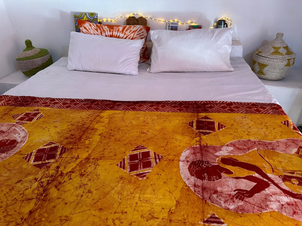 Notre association humanitaire M.A. propose une immersion totale dans la culture sénégalaise avec la Chambre Diola, lits avec moustiquaires et internet. Espaces communs avec salle d'eau partagée avec une autre chambre, cuisine partagée et plusieurs salons. La maison est à 50 m de la plage et 3 km du centre-ville, offre tranquillité et cérémonies culturelles. Propositions d'activités. Les profits soutiennent des projets humanitaires locaux. Une expérience enrichissante et inoubliable vous attend.