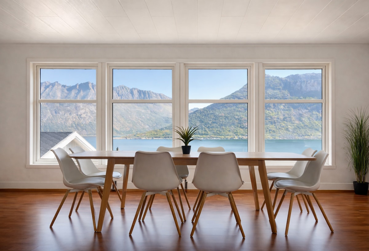 피셔먼스 하우스 1. 아름다운 피오르와 산 전망을 즐길 수 있는 넓고 깨끗한 숙소에 머물러보세요. 숙소는 바다에서 50미터 거리에 있습니다. 1층에 있는 아파트는 80㎡입니다. 훌륭한 바다 전망. 놀라운 경치와 하이킹 기회. 호숫가에 있는 전용 바베큐 공간. Strytinden(413), Høgtinden(403), Veimannsfjellet(503), Kvænan(967)에서 가깝습니다. 세글라, 헤스텐, 후스피엘레, 안데르달렌 국립공원까지 차로 약 1시간 거리입니다. 2024년에 새롭게 리모델링되었습니다. 노를 저어가는 보트를 대여할 수 있습니다. 세탁기 이용 가능