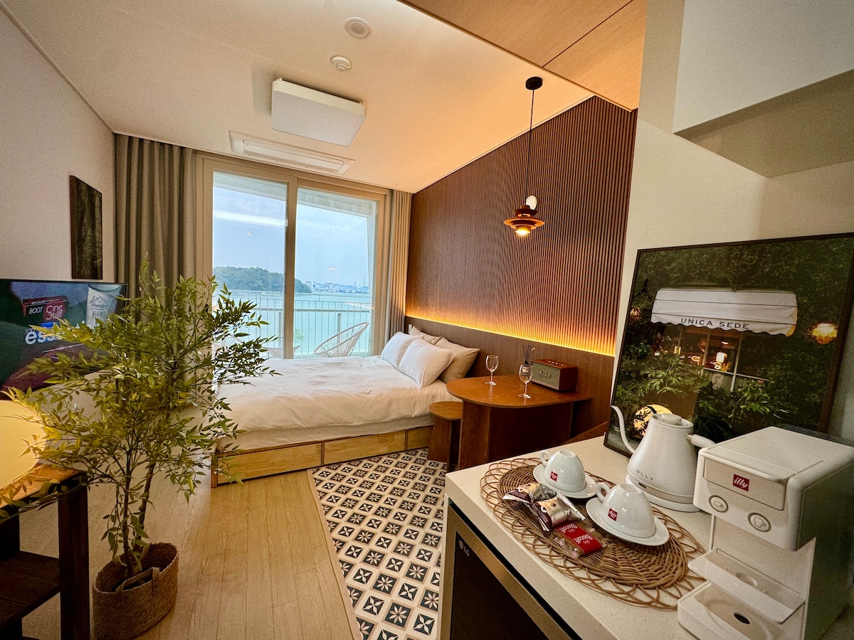 **공간술사 12월 이벤트** 2박이상 연박 10% 할인!! 여유와 낭만을 즐겨보세요 :) (숙박일정을 선택하시면 자동으로 할인 적용됩니다!) SNS 맛집, 카페, 회센터, 유람선, 낚시, 갯벌체험까지! 먹거리와 즐길 거리가 가득하고 평온함과 여유로움이 공존하는 구읍뱃터에서 힐링술사의 감성숙소에 여러분을 초대합니다. 😊 v 체크인: 오후 5시 v 체크아웃: 오후 1시 * 얼리 체크인/레이트 체크아웃: 시간당 2만원 v 넷플릭스,유튜브 등 5개 OTT 시청가능 v 무료 와이파이 v 오션뷰 테라스 v 일리커피머신&캡슐 v 퀸사이즈 침대와 호텔침구 (3인이상 인원추가시 토퍼 및 침구 추가 제공) v 지하주차장 무료이용 가능. 별도 절차 없이 입/출차 자율주차. v 변기에 음식물, 물티슈 등 이물질 No! v 테라스 갇힘 주의: 테라스에 계실 때는 문을 살짝 오픈해주세요.