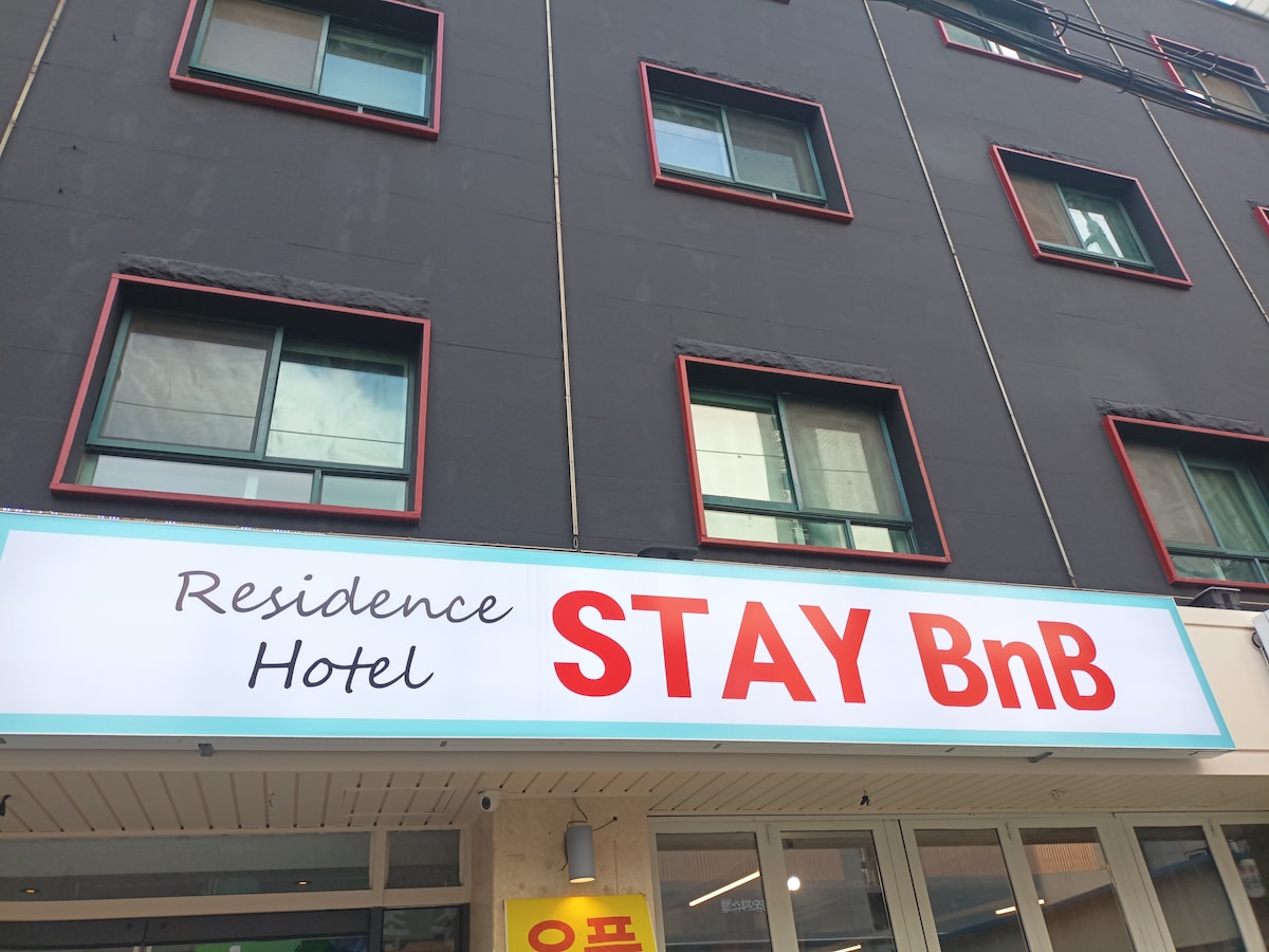 2023년 오픈 냉장고, 세탁기, 주방, 옷장, 에어컨이 풀옵션으로 갖춰진 레지던스 입니다. - 언택트 체크인 숙소 [침실] - 퀸 사이즈 베드 1개 [주방] - 간편한 취사가 가능한 각종 조리도구 - 냉장고, 전자레인지, 커피포트 - 세탁기, 세탁세제 *조미료는 구비되어 있지 않습니다. [욕실] - 샴푸, 컨디셔너, 바디워시 - 헤어드라이기, 수건 - 객실에 구비된 비데 * 1회용 욕실용품(칫솔, 치약, 폼클렌징 등) 제공은 불가합니다. * 55" Smart TV 넷플릭스(개인계정)/유튜브 시청 가능합니다. * 건물내 유료 주차 가능 합니다.