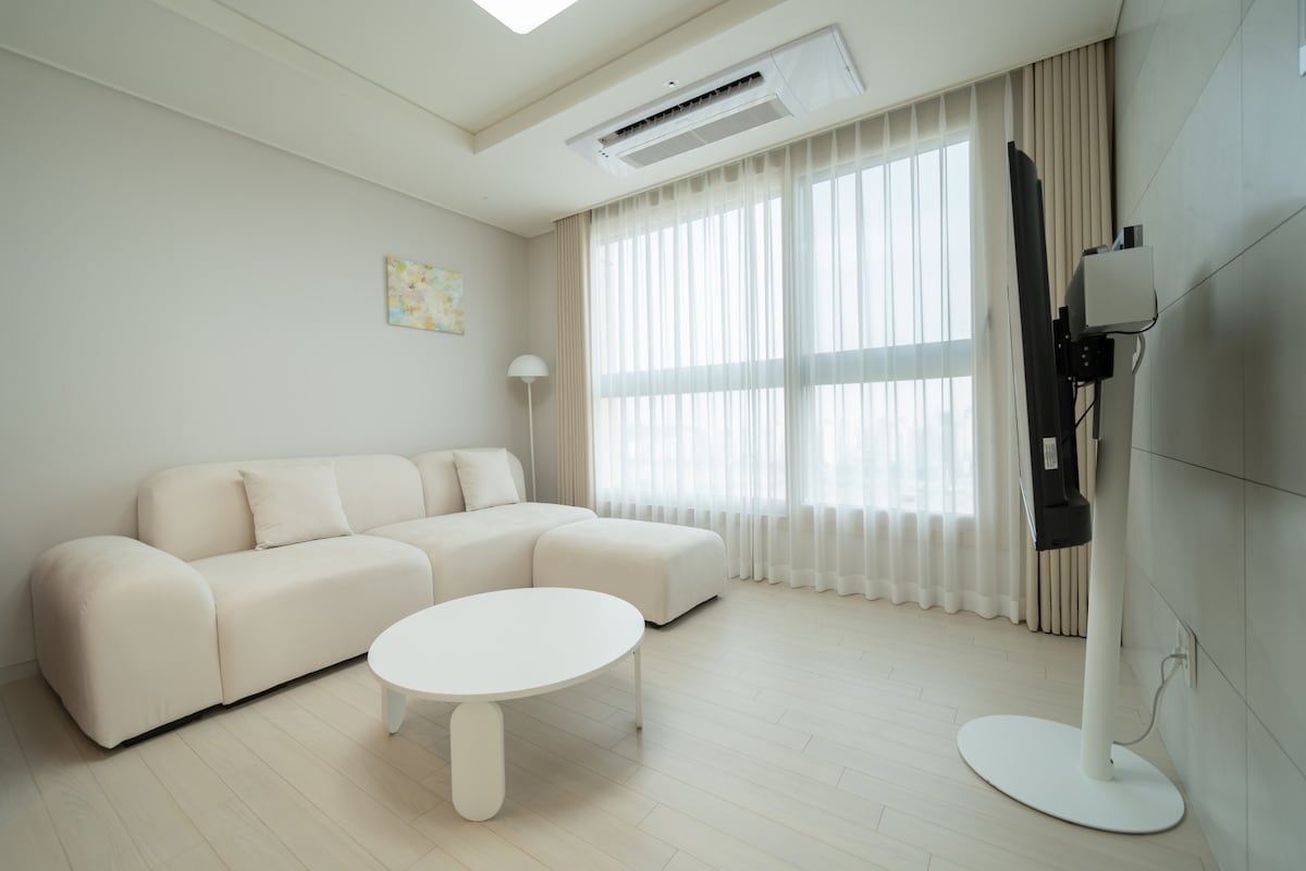 * 2024년 9월 신축 레지던스 * ★장기숙박(6개월)으로 잠시 예약마감 처리하였습니다.★ ★이제 2026년 2월 부터는 편하게 예약해 주세요.★ ★예약문의는 언제나 환영입니다.★ 온 가족이 머물기에 적합한 넓은 숙소입니다. 때로는 친구끼리, 2가족 모임, 부모님과 함께하고 싶은 넓은 숙소 입니다. 인천 월미도유원지 및 차이나타운 차로 5분 ~10분 이내거리에 위치하고있으며, 신포시장 인하대병원은 차로 5분이내거리입니다. 인천내항, 월미도가 한눈에 보이고 바다뷰와 시티뷰를 동시에 보면서 노을까지도 한번에 감상하실수있는 34층에 위치하여 가족들과 친구들과 함께 넓게 이용하실 수 있는 숙소입니다. 평일 얼리체크인 또는 레이트체크아웃 가능합니다. 호스트에게 문의해주세요.