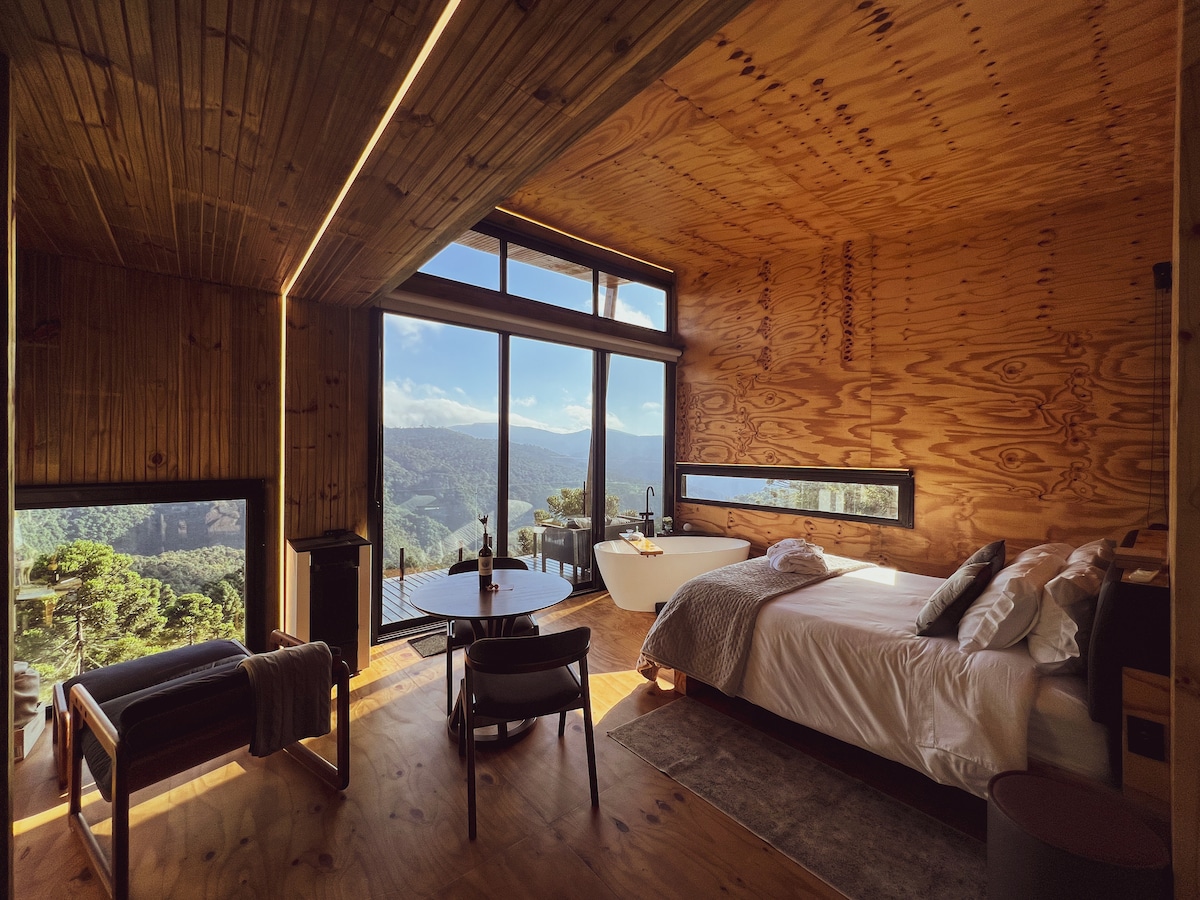 Cabana luxo de altitude com banheira café da manhã