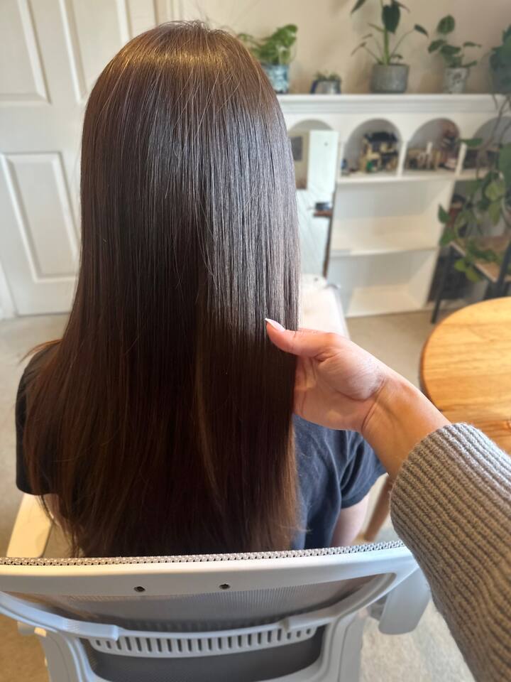 전문적인 스무딩 트리트먼트로 곱슬거림을 줄이고, 광택을 더하며, 관리 용이성을 개선합니다. 상담 및 애프터케어 조언이 포함됩니다.