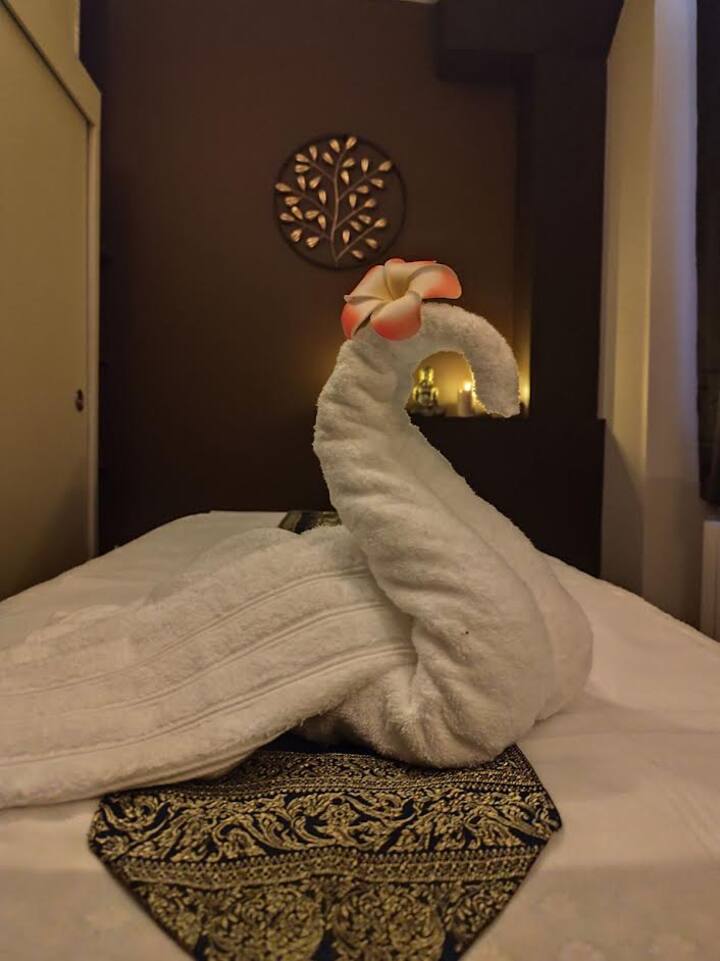 저희 미용실에서는 전통 태국 마사지, 따뜻한 오일 마사지(코코모노이, 그린티, 발리)를 제공합니다.