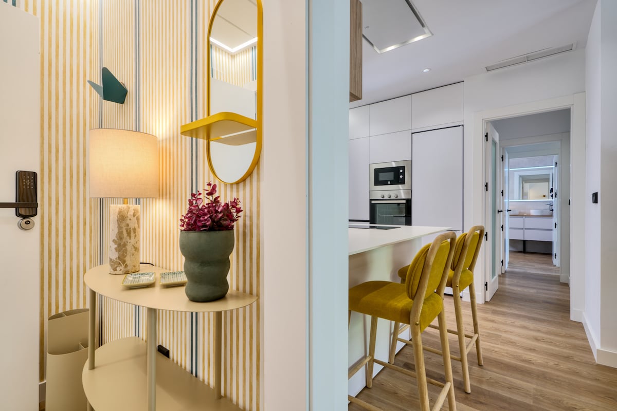 Cozy and comfortable 80mยฒ apartment, just a few min. walk from the city center and the train station. Fully equipped for short or long stays. Ideal for leisure and remote work. Bright living room with city views and fParking available for large cars (price upon request). Enjoy the swimming pool open all year round. Located in a central neighborhood, well connected with a multitude of services. Ideal for exploring Seville in comfort and relaxation. Your perfect home in the heart of the city!