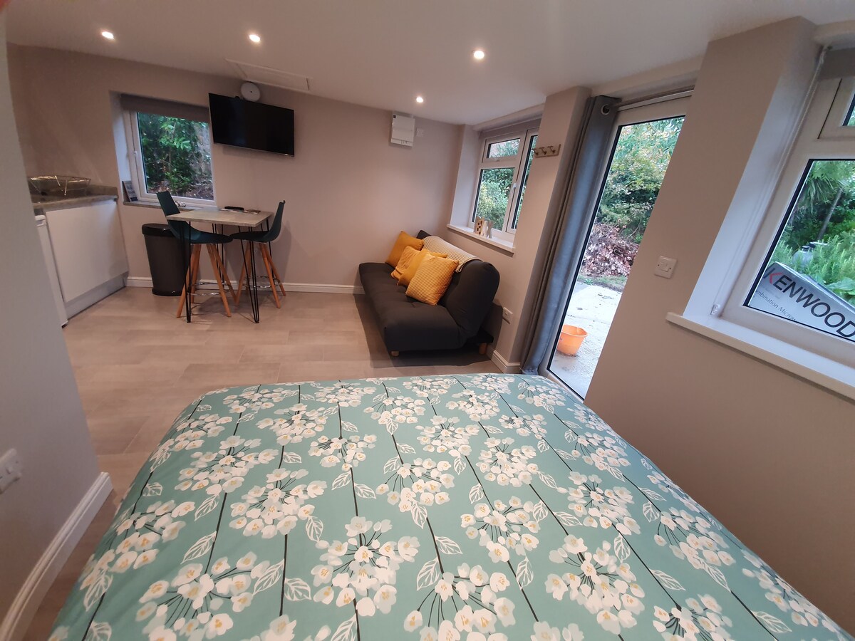 Cosy self contained studio next to, but separate to our family home located on the outskirts of Newport. 20 minute walk to the town centre and local amenities. 10 minute walk to the historic Carisbrooke castle and beautiful walks in the surrounding area. We are on a bus route. Private access to the property and free on street parking. Studio 114 offers a double bedroom, bathroom, kettle, toaster, microwave and mini fridge, TV, free Wi-Fi and small patio space with table and chairs.