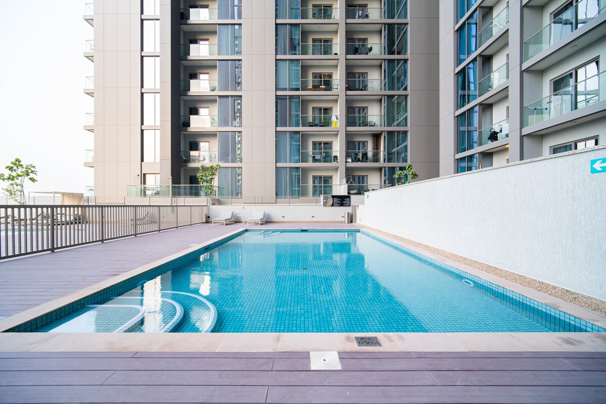Imagine Downtown Dubai just minutes away, without the crowds, noise, or parking stress. This bright 1BR in Sobha Creek Vistas Reserve, MBR City, gives you skyline views, easy access to Downtown and Business Bay, and quiet mornings you’ll love.. Families love the free crib, high chair, pool, and playground. Guests say it’s exactly as shown—safe, spotless, close to Dubai Mall, parks, and cafes, with free parking and a gym onsite.