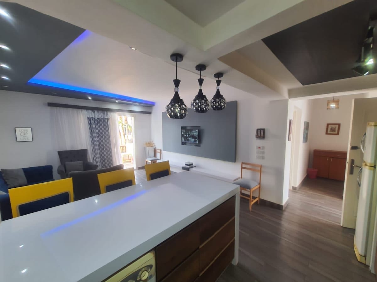 Welcome to Badawia Retreat, an apartment located in Sinai, Sharm El-Sheikh. This space provides the perfect environment for you to unwind, relax! With its carefully placed soft lighting, comfortable lounging spots, and serene atmosphere, Badawia Retreat brings the stillness needed for those seeking rest, and renewal!