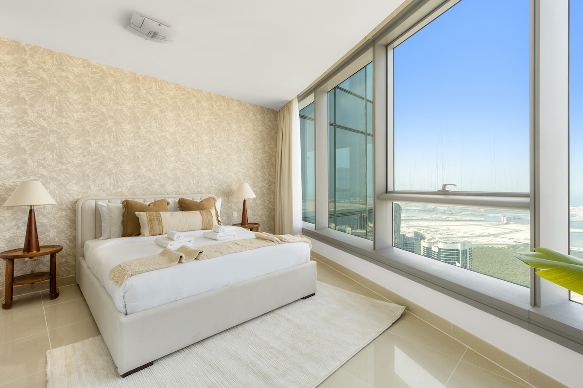 Brand new, modern and unique apartment in Reem Island — luxurious like a 5-star hotel, yet homely offering a view of the Al Reem with a beautiful sunset. Enjoy pools, gym, private parking, workspace and much more. Minutes from Al Maryah Island, ADGM, Galleria Mall. Self check-in for ease, plus last-minute bookings welcome.