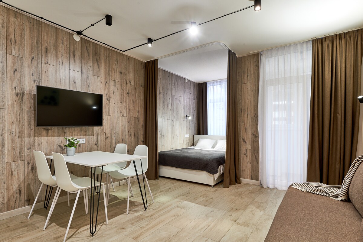 안녕하세요! 저는 줄리아입니다. 키예프의 새로운 디자이너 아파트 (32평방미터) 에서 여러분을 맞이하게 되어 기쁩니다. 개방형 구조, 목재 표면, 세련된 인테리어로 꾸며진 세련된 현대식 아파트를 공유하게 되어 기쁩니다. 고급 침구, 헤어드라이어, 다리미, 목욕용품 등 숙박에 필요한 모든 것을 찾을 수 있습니다. 숙박에 대한 칭찬으로 원하는 사랑스러운 커피나 차 한 잔으로 하루를 시작하세요. 집에 오신 것을 환영합니다!