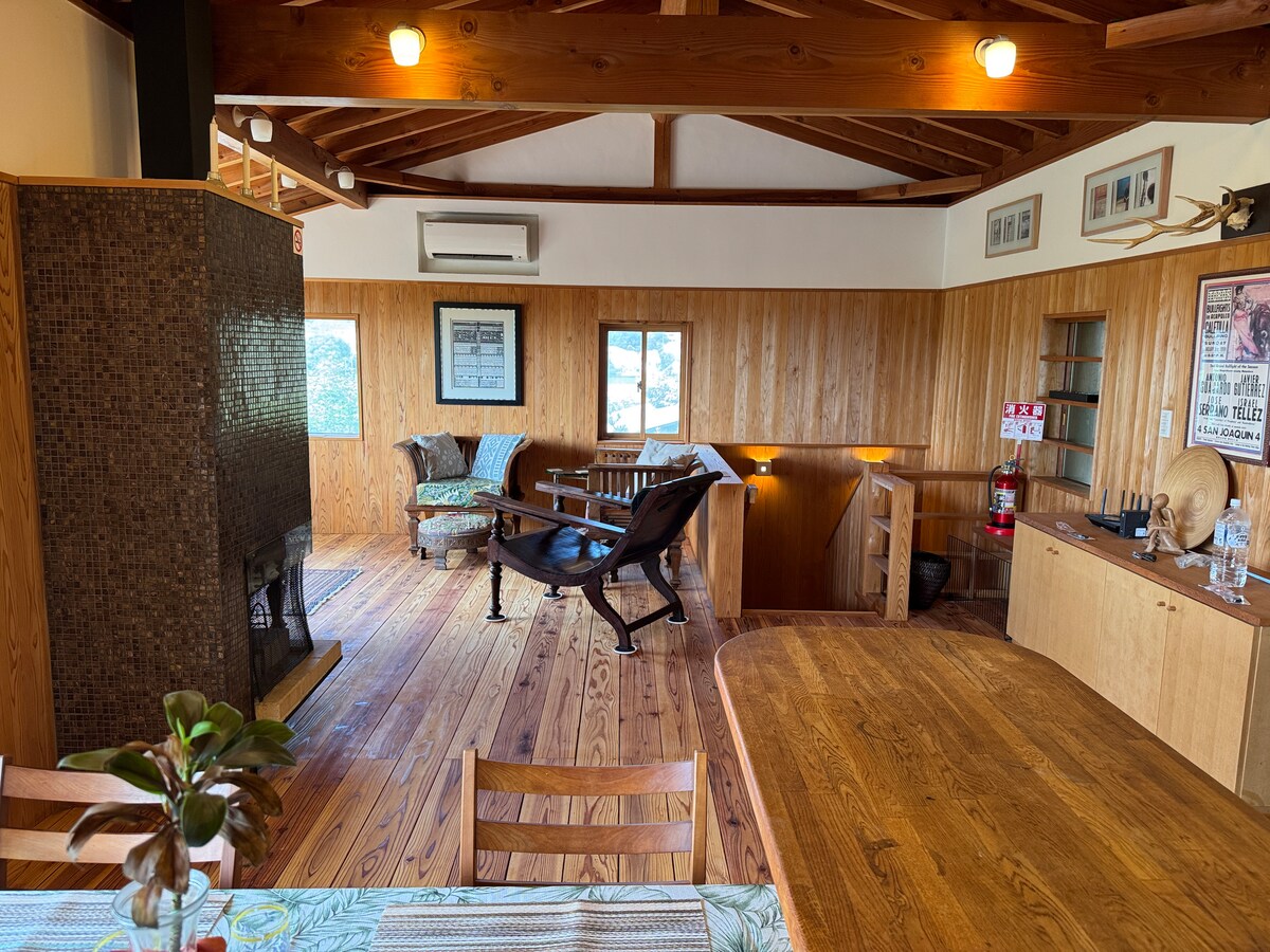 오션뷰 전원주택에서 자연의 특별한 소리를 경험해보세요. 타누시 국립공원에는 파워스팟 하트 동굴 류구(지브리의 '포니오' 모델)와 타누시 해변을 통과하는 전원주택이 있습니다. 전원주택의 현관문으로 들어서면 나무의 초록색과 반짝이는 바다의 빛이 눈에 들어옵니다.천장이 높은 20개 다다미 매트 거실에는 겨울에는 소파, 주방, 로프트, 벽난로가 마련되어 있어 가족 및 친구들과 함께 편안한 휴식을 즐길 수 있는 공간입니다. 창문에서 테라스로 나가면 하늘과 바다가 펼쳐지는 것을 볼 수 있습니다.자쿠지와 해먹 그네에서 천천히 흐르는 편안한 바람과 하늘을 고급스럽게 느낄 수 있습니다. 테라스에서 스카이 데크로 가는 계단을 한 층 더 올라가세요.눈앞에 보이는 것은 자연뿐입니다.숨 막히는 경치가 펼쳐집니다. 이즈의 바다와 어선의 여유로운 흐름으로 개울에서 새 소리를 들을 수 있습니다.디톡스 너무 좋아요. 그런 다음 한 층 내려가 숲속 강의 물소리를 들으며 숯 바베큐를 즐겨보세요.맛있고 재미있고 좋은 추억이었습니다. 밤에는 별이 빛나는 하늘이 눈부시고, 날씨가 좋으면 별똥별을 볼 수 있습니다!하늘의 아름다움을 즐길 수 있습니다.