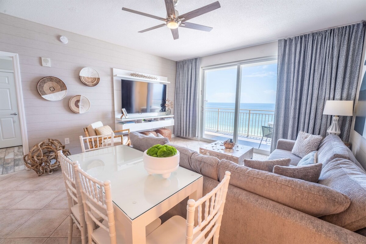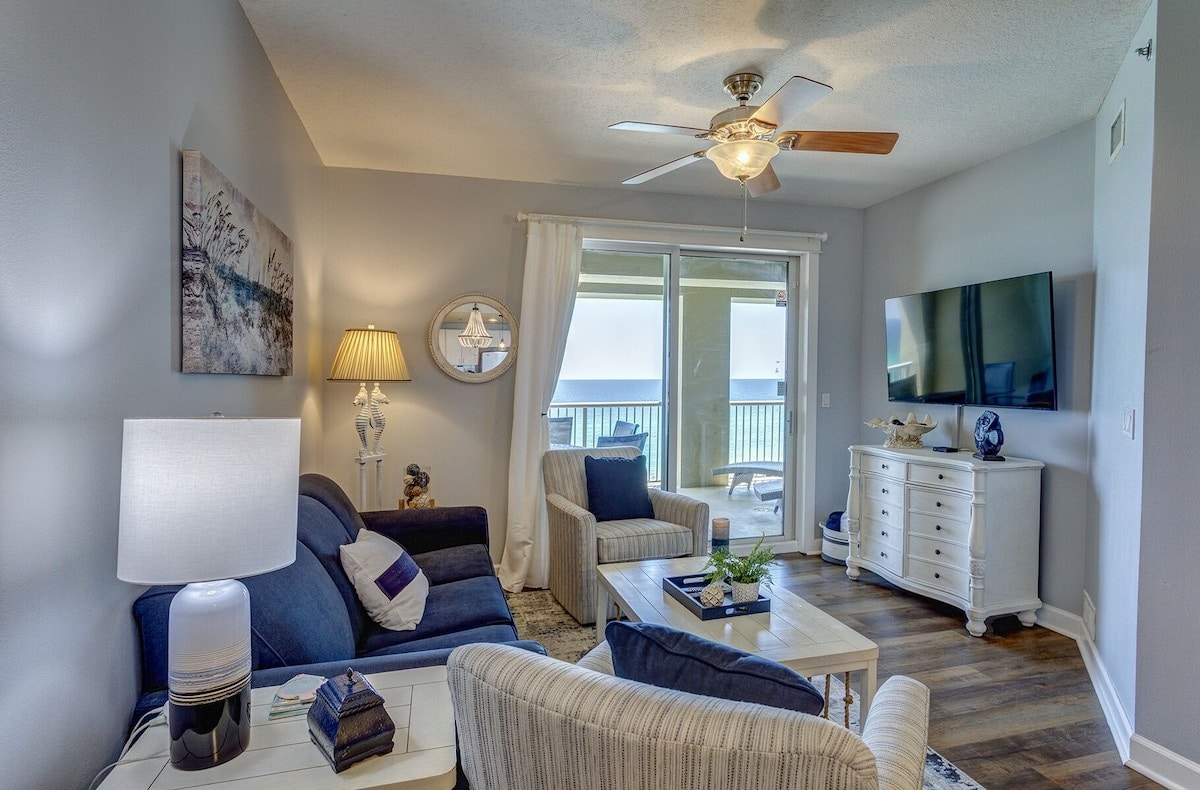 NO EXTRA FEES AFTER BOOKING! Wake up to Gulf views from your PRIVATE BEACHFRONT BALCONY in this charming, low-rise condo. Step directly onto sugar-white sand and emerald waters just outside your door. Enjoy a year-round, seasonally heated pool with an easy walk to Pier Park for dining, shopping, attractions, and nightlife. Looking for different dates or layout? I own 5 condos in this building. Click my host profile, then scroll down to view all of my listings.🌴