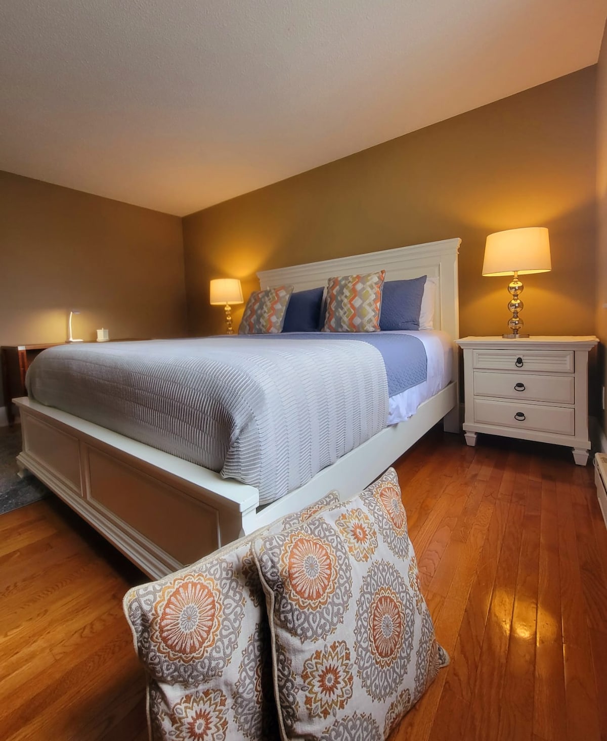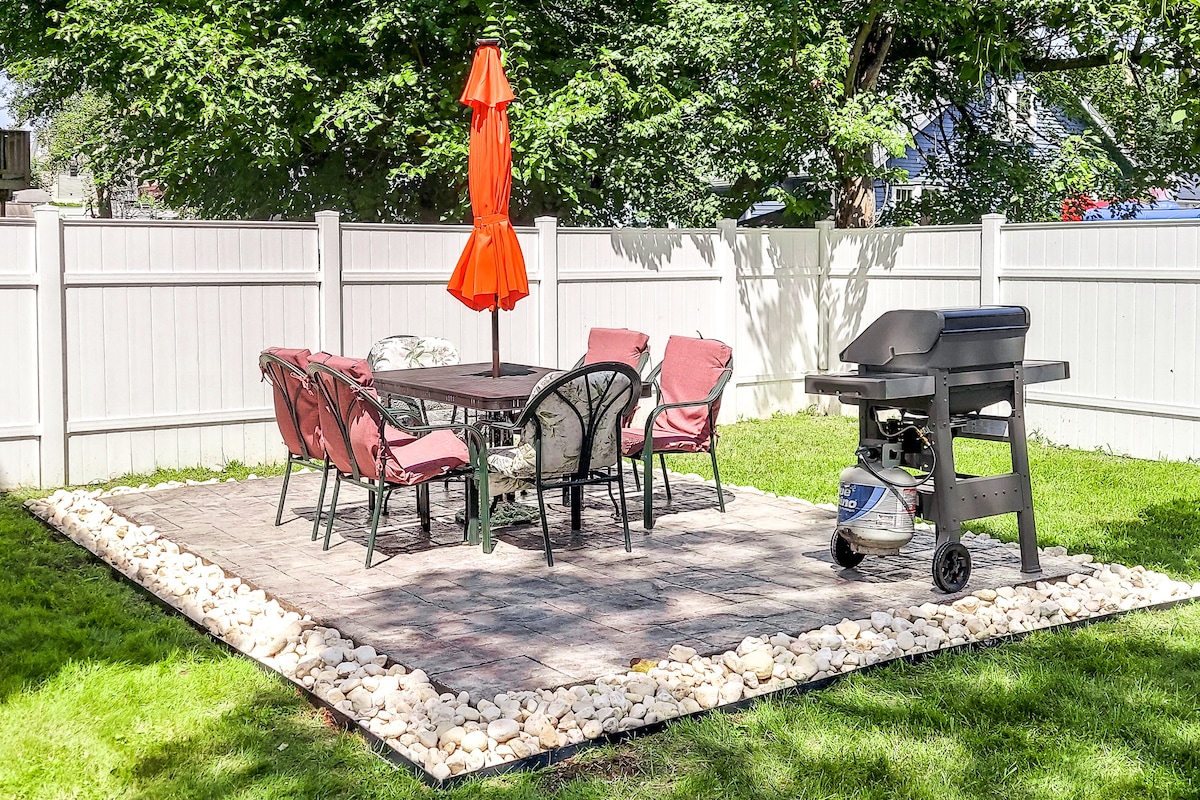 가구가 완비된 새로운 지하 1베드룸 개인 아파트. 새로 구입한 편안한 퀸사이즈 침대가 있습니다. 주방, 욕실, 거실. 침실에는 워크인 옷장이 있습니다. 아파트는 2500평방피트 주택의 지하에 있습니다. 이 아파트는 최소 800평방피트이며 전용 출입구가 있습니다. 큐리그(커피, 설탕, 크리머 제공), 가스레인지, 대형 냉장고, 전자레인지, 토스터, 헤어드라이어, 다리미가 있습니다. 수건, 샴푸, 린스, 비누가 넉넉합니다. 반려동물 동반 불가