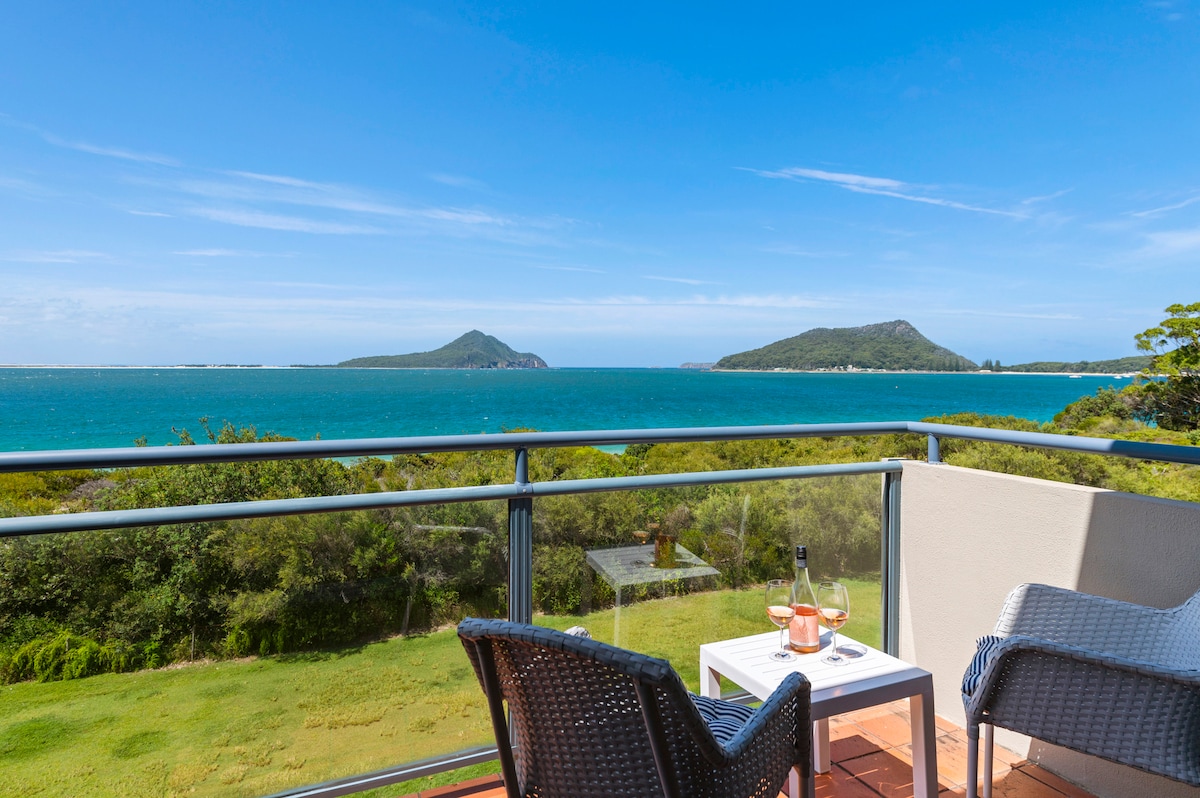숙소와 주차장까지 평평한 위치에 있는 높은 곳에서 아름다운 물 전망을 즐기세요. 플라이 포인트 해변과 넬슨 베이 빌리지까지 조금만 걸으면 됩니다. 환상적인 바다 전망과 멋진 일몰을 감상할 수 있는 넉넉한 발코니가 마련되어 있으며 돌고래가 수영을 즐길 수 있습니다. 발코니에는 문이 있어 아이들과 개에게 안전합니다. 침실 2개, 퀸사이즈 침대가 있는 침실 1개, 킹사이즈 싱글 침대가 있는 침실 2개. 현재 옆집에 공사 현장이 있으며, 거의 완공 단계입니다.