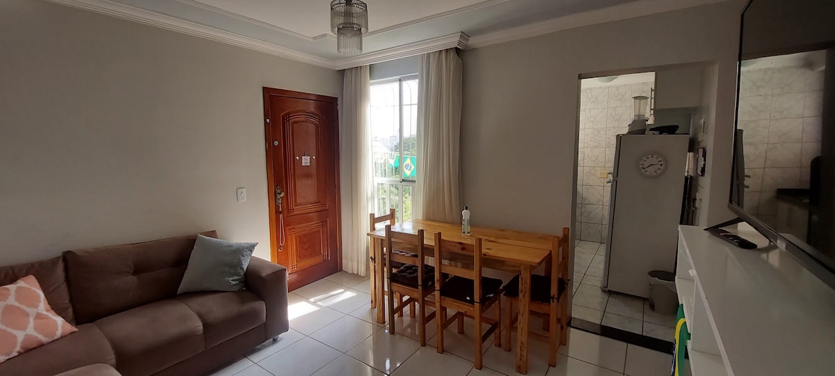 Apartment 5 min drive from Adiministrative City, 5 walk Faculdades FAMINAS and UNA Pizzaria Guarani 24hs next to the Christ King Cathedral in front of the Shopping Station next to the HPS Risoleta Neves, metro station Vilarinho 20 min from Confins airport, 15 min to Mineirão stadium 20 min from central Belo Horizonte.