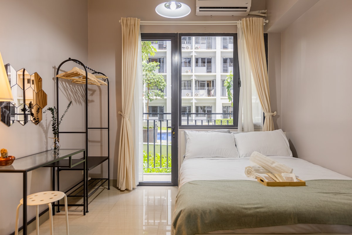 발코니가 있는 아늑한 1베드룸 콘도 | 200Mbps 와이파이 | 리조트 스타일의 생활 가구가 완비되고 에어컨이 설치된 26평방미터의 콘도에 머물며 전용 발코니를 즐겨보세요. 편안함, 프라이버시, 집 같은 느낌을 훌륭한 가격에 제공합니다. 200Mbps 초고속 인터넷을 즐겨보세요. 원격 근무, 화상 통화, 스트리밍 및 온라인 작업에 적합합니다. 리조트 스타일의 분위기가 물씬 풍기는 아시아 CBD의 쇼핑몰에 위치한 이 숙소는 편안하면서도 생산적인 숙박을 원하는 커플, 나홀로 여행자(여가 또는 출장자) 또는 소규모 가족에게 이상적입니다.
