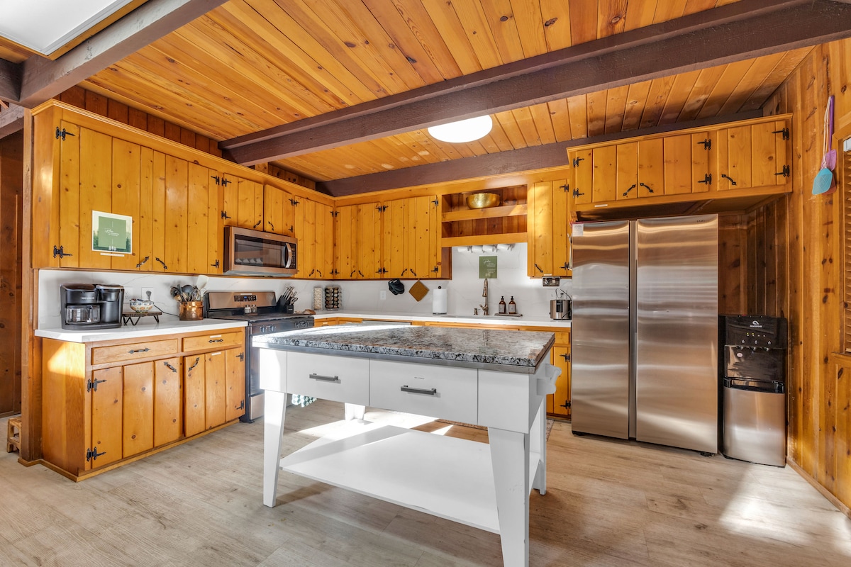 호수에서 5분 거리에 있는 이 보헤미안 스타일의 통나무집에서 편안함을 즐기세요. 사방이 나무로 둘러싸여 있습니다! 럭스 킹 사이즈 침대 2개, 각각 조용한 작업 공간과 14인치 킹 사이즈 매트리스가 있습니다. 장난감, 책, 프리미엄 침구가 있는 6개의 놀라운 빌트인 이층 침대가 있는 세 번째 방에서 아늑하게 잠을 잘 수 있습니다. 아늑한 벽난로와 10인 이상을 위한 식사 공간이 있는 넓은 객실. 섬과 팬트리가 있는 넓은 쿡의 주방에는 숙소의 편의시설이 갖춰져 있습니다. 게임룸이 있는 차고도 있습니다. 탁구, 푸스볼, 아케이드 농구를 즐길 수 있습니다! 휴식을 취하고 재충전하세요!