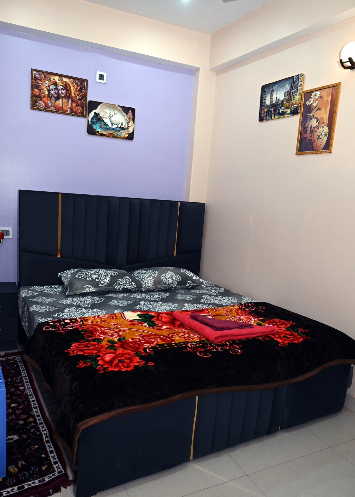 #프리미엄 2BHK(가족 전용) #도착하시면 가족과 함께 절대적으로 위생적이고 안전한 장소에서 휴식을 취하세요. #숙소에는 엘리베이터와 전원 백업이 있으며 차량 주차장이 있습니다. #카시 비스와나트 사원은 불과 2.5km 거리에 있으며, 다샤슈와메드 가트는 3km 거리에 있습니다. #거실 - 컨버터블 소파 침대 #식탁 #홀에는 분할 에어컨과 스마트 TV가 있으며, 두 침실 모두(창문 에어컨) # 조리를 위한 현대적인 주방 시설 완비(전기 주전자, 인덕션, 토스터, 냉장고, 굴뚝, 정수기 포함) #헤어드라이어, 다리미, 세탁기, 자이서
