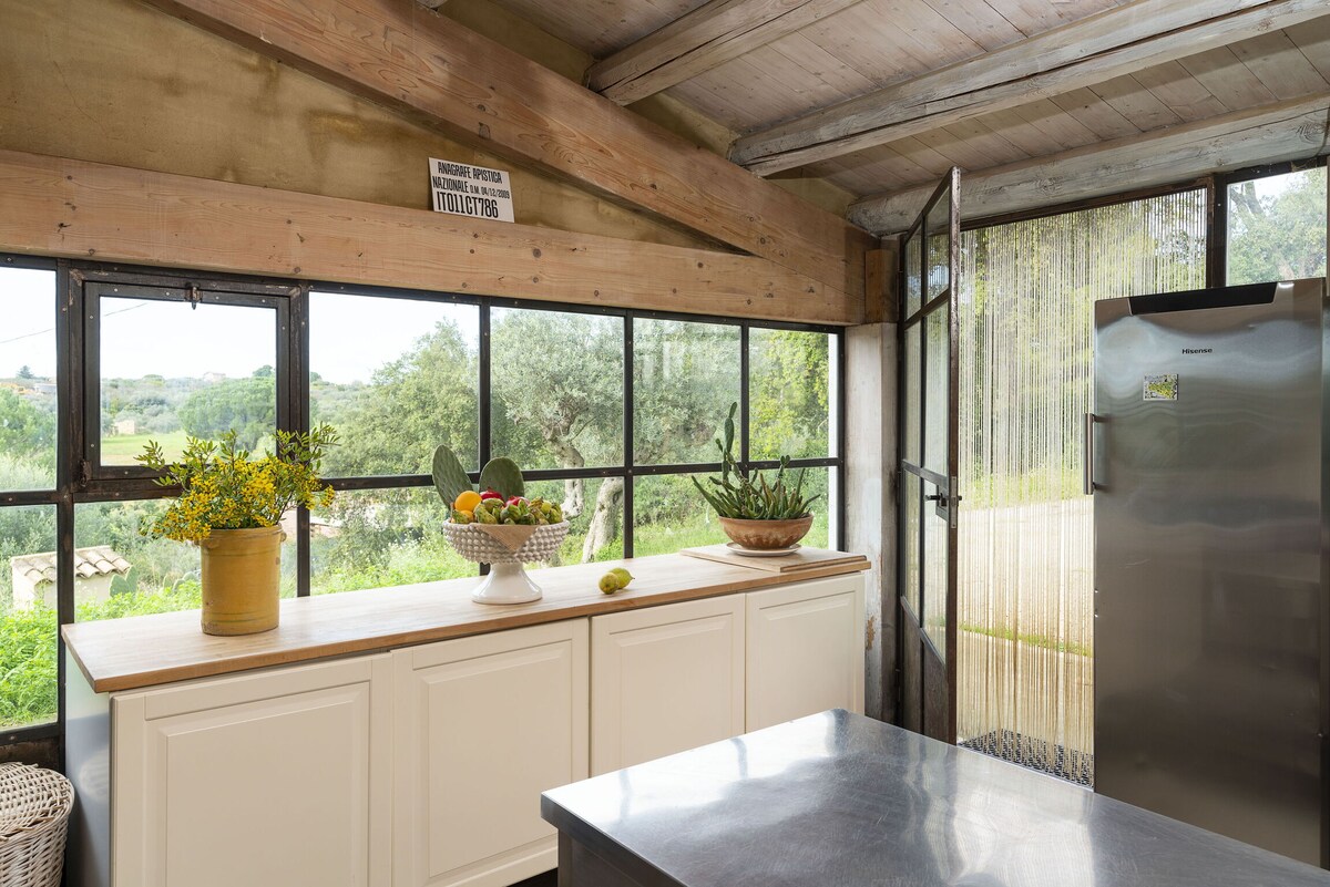 La terrazza sugli ulivi is located in a very panoramic point between olives, carob and wine groves. 이 숙소는 개방형 로프트 2개에 침실 2개에 5인용입니다. 집을 두 개의 미니 아파트로 나누는 한 문이 이미 프라이버시를 보장합니다. 외부 공간에서 게스트는 바비큐 공간과 소파, 테이블, 의자가 있는 많은 휴식 공간을 사용할 수 있습니다.