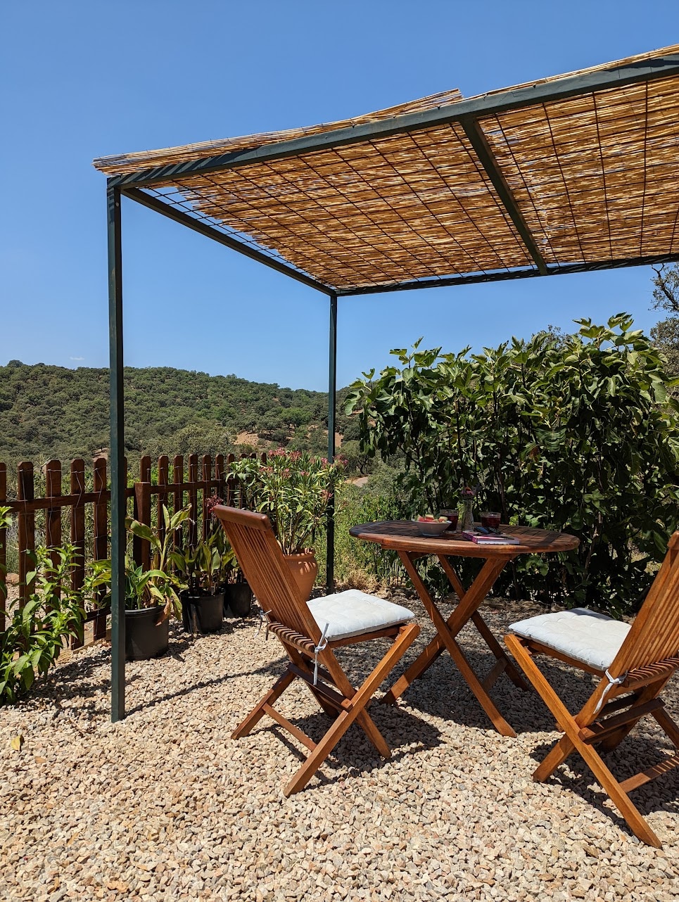Coqueta casa rural, situada a dos kilómetros de Aracena. Para amantes de la tranquilidad y el campo, este apartamento ofrece un espacio diáfano con cocina y baño independientes. Perfectamente equipado y con capacidad para hasta cinco personas, es ideal para parejas, pequeño grupo de amigos, o familias. La casa está junto a la de los propietarios, en una finca con piscina, barbacoa, huerto y maravillosas zonas verdes donde relajarse leyendo, dando paseos o mirando la naturaleza.