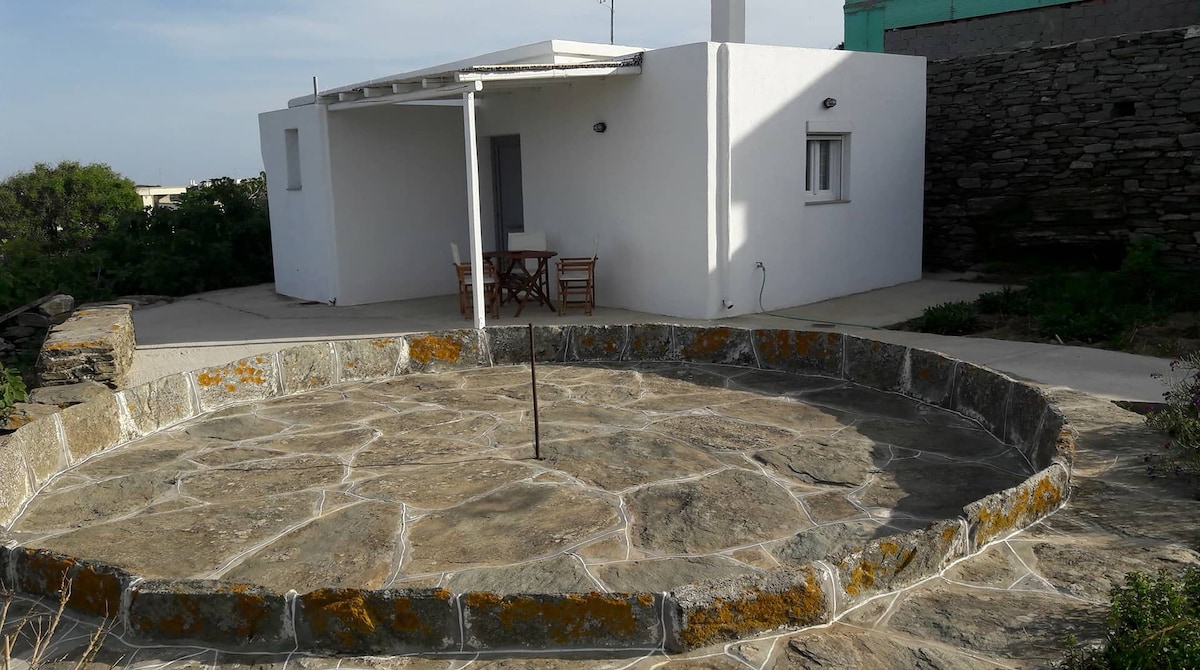 It's a cottage house on a very quiet and peaceful place on the northeast side of the island. You have an amazing view to the Aegean Sea, which gives you the opportunity to relax and rest while being on your vacation. There is one master bedroom with a queen bed with a Grecostrom Bodytopia Series matress and two single beds in the resting area which is shared with the kitchen. It's also fully equipped kitchen and a bathroom, which will give you the ability to enjoy your vacation at your own pace.
