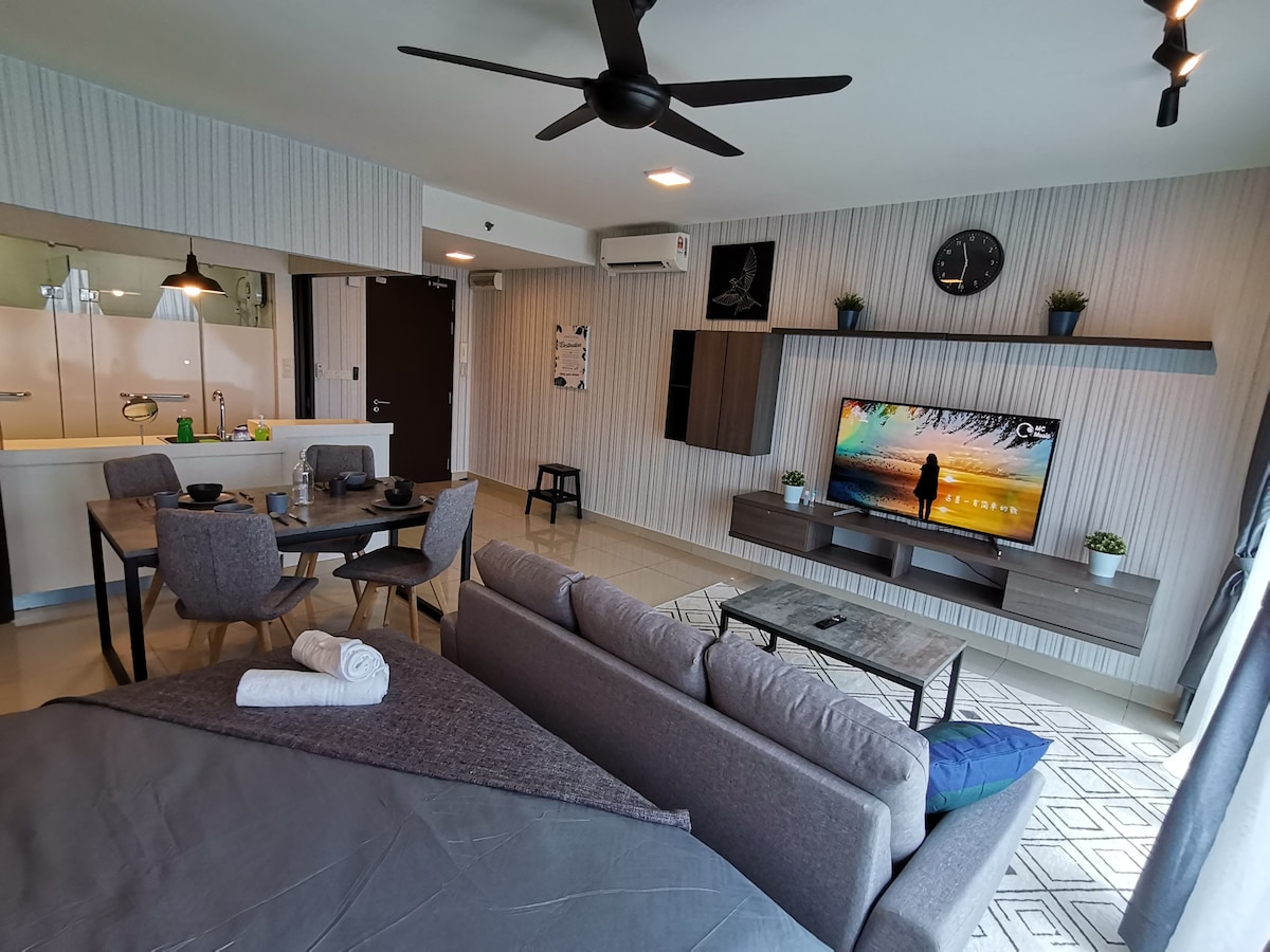 높은 층의 편안한 홈스테이 + 와이파이 및 55인치 대형 TV • 세티아 알람의 주요 위치에 있는 아름다운 소호 유닛. • 세티아 시티 쇼핑몰 옆 • 세티아 시티 컨벤션 센터 옆 • 출장이나 어린이를 동반한 가족 여행에 적합합니다. • 무료 초고속 인터넷으로 즐거운 시간을 보내세요.