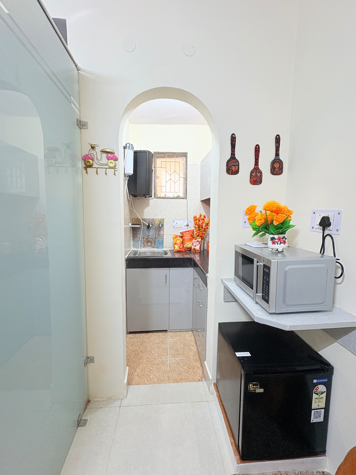 Wake up to breakfast & tea/coffee in this peaceful urban retreat, a space that feels like a warm hug, nestled ~3 mins from Golf Course Road, yet SO peaceful! Includes complementary essentials for your breakfast & tea/ coffee. Every small detail such as scented candles, air diffusers, sound system, mood lighting, personal care items, cooking essentials, board games & decor items are thoughtfully curated to make your stay cozy, comfortable, and unforgettable." ๐ก๐