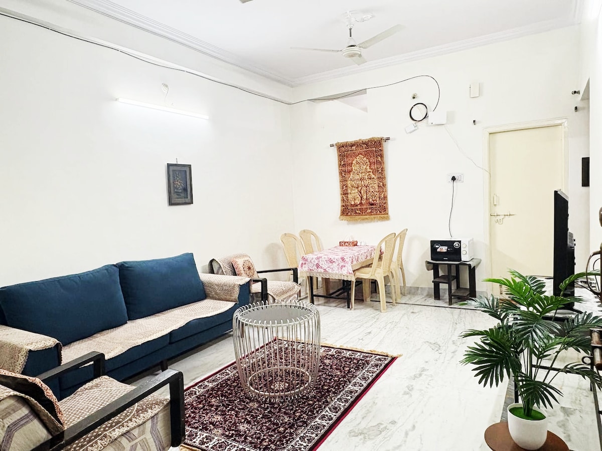Cozy 2BHK Flat - Perfect for Families at a Prime Location | 2 Bedrooms | Airconditioned | 2 Bathrooms | 2 Geysers | 24x7 water supply | Fully Furnished | Kitchen with Utensils | Fridge | Microwave | Gas | Inverter | High Speed WiFi.