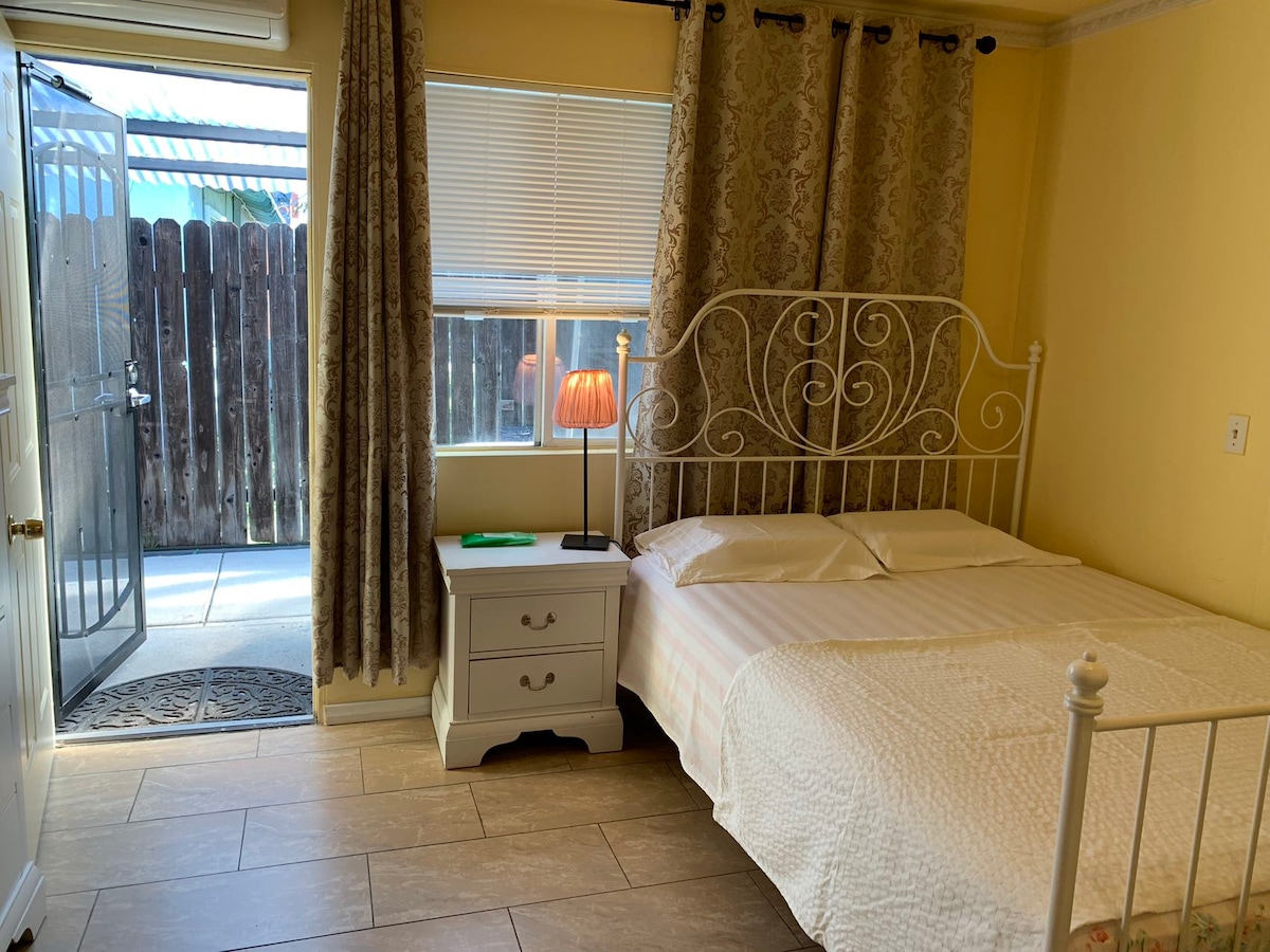 ~Dog friendly - No cats ~Gated acre of property with secure parking. ~Extra large bedroom w/private entrance & full Bathroom. Mini fridge/microwave, for reheating. No kitchen or sink ; no cooking in bedroom. ~No smoking anywhere on property. ~outdoor shared space ~ porch, back yard covered patios, pool, spa, large grass area. ~registered guest only. No visitors. 1941 farmhouse complete remodel. A lot of dirt & animals. If you want a city experience this is not for you