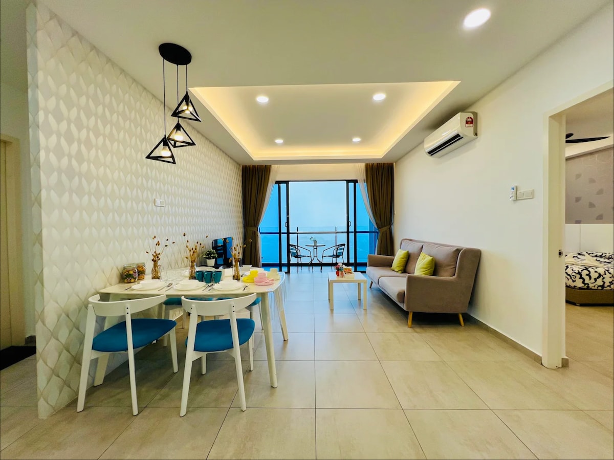 ★Two Bedrooms, 1050Sqft, 8 Beds ★ 55" TV pre-logged in with our Netflix account ★Highspeed Internet (Unlimited Usage) ★Security access card, 24 hours secured by guards ★Theme Park Pool, Child Playground. ★Grocery Stores in the building and Restaurant nearbys and serene space.