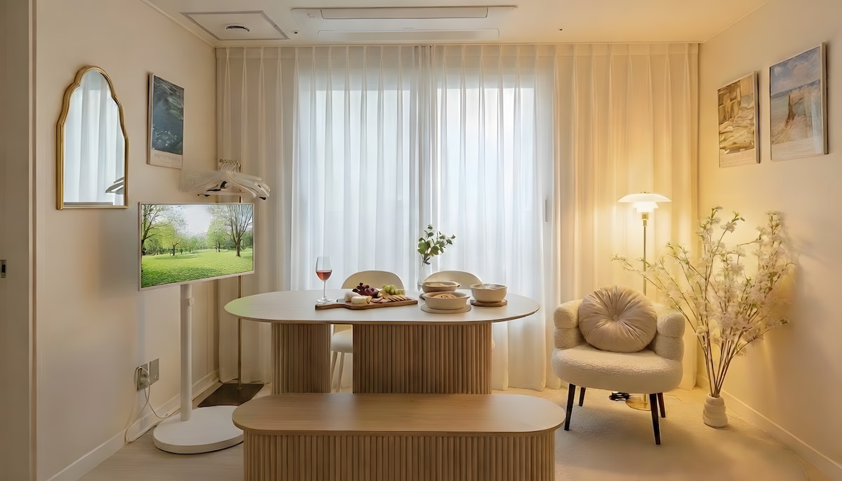 신포역 차이나타운_로맨틱 킹 베드룸 아파트_7m LED & Bose