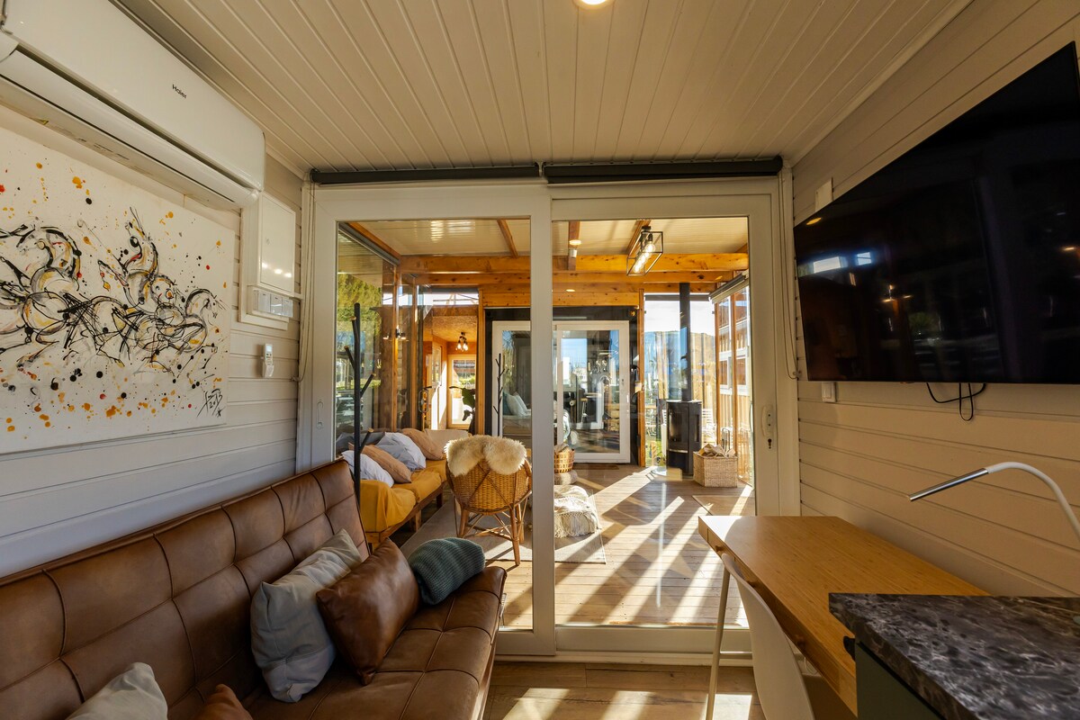 Reconnect with nature at this unforgettable escape. Our 2 tiny houses are in the midst of agricultural landscapes on a horse farm 400 meters from one of the best surf beaches around. The container unit is private only for you. Its entrance is via the the subroom. This sunroom, as well as laundry space, garden and backoffice / storage space is shared with the other unit (2pax) Our local community also offers a small local beach bar, a pizza place and a micro brewery & hamburger restaurant.