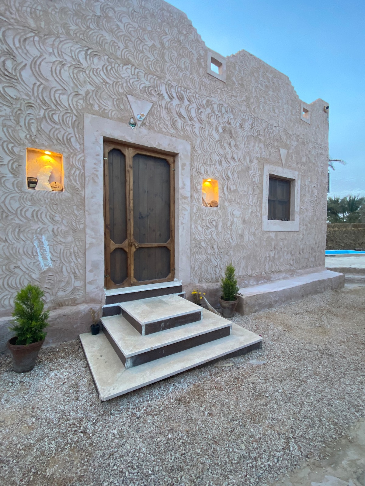 Hidden among palm trees in the heart of Siwa Oasis, this private villa offers a peaceful retreat away from the bustle. Just a 10-minute walk (3 minutes by car) from the lively Siwa market, it balances serenity with convenience. Built as an earth home using traditional mud and natural wood, the space reflects Siwa’s spirit. Handcrafted olive-wood furnishings, warm salt lamps, and natural textures create a grounding atmosphere designed for rest, renewal, and reconnection.