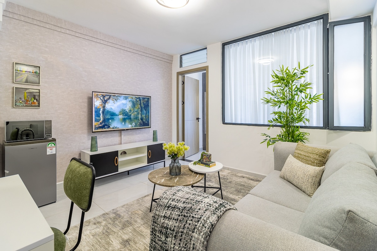 중심부에 자리하여 입지적 편리함과 세련된 스타일을 모두 갖춘 공간입니다. 프리미엄 편의시설 에어컨 에어프라이어/완비된 주방 숙소 내 무료 세탁 문/창문 스크린 프리미엄 초고속 인터넷(60mbps) 넷플릭스 리프트 탑 커피 테이블/책상(소파에서 작업) 깨끗한 물을 위한 정수기 건물 편의시설 중심부에 위치 전용 주차장 헬스장, 사우나, 한증막 스쿼시, 스누커가 있는 게임룸 인피니티 수영장 건물 내 레스토랑 건물 내 식료품점 훌륭한 수압