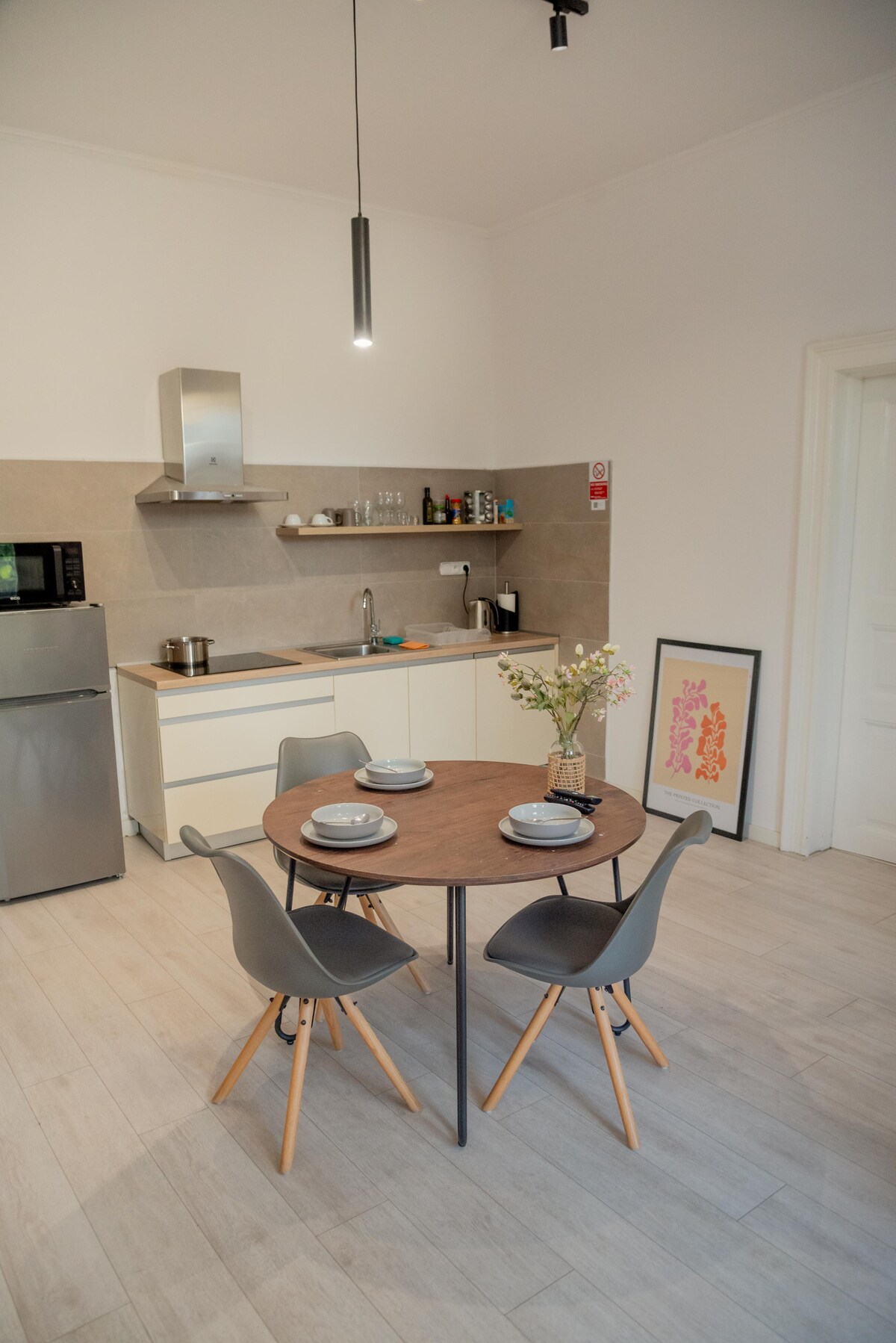 유서 깊은 구시가지의 매력과 현대적인 편안함이 조화를 이루는 세련된 스칸디나비아 아파트에 발을 들여놓으세요. 중심가에서 도보로 단 2분, 상징적인 성 엘리자베스 대성당에서 6분 거리에 위치한 이 아파트는 코시체 중심부에 위치하고 있습니다. 카페, 레스토랑, 문화 명소로 둘러싸여 있습니다. 연인끼리, 친구끼리 또는 가족끼리 방문하시든, 아늑하면서도 넓은 휴양지는 편안하고 여유로운 숙박을 위해 설계되었습니다.