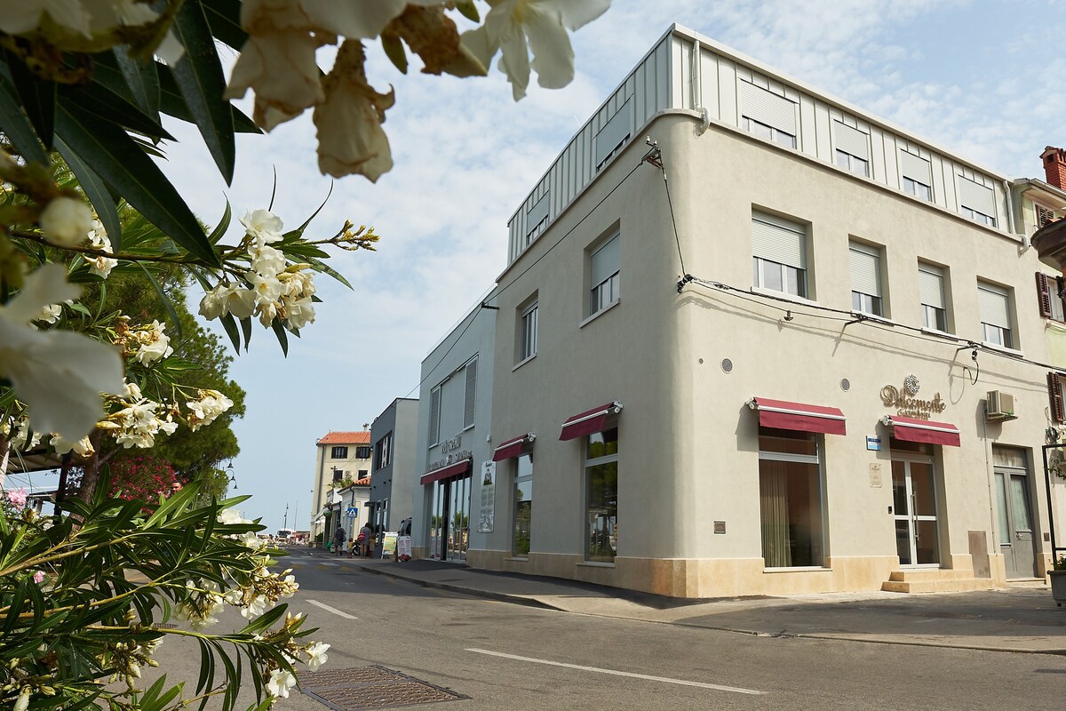 아트 호텔 타르티니는 피란 중심가에 위치한 세련되고 디자인이 뛰어난 객실을 제공합니다. 각 객실에는 현대적인 가구, 편안한 침대, 독특한 예술적 감각이 돋보입니다. 게스트는 바다 또는 광장 전망, 에어컨, 무료 와이파이, 전용 욕실을 이용할 수 있습니다. 이 호텔에는 아늑한 로비, 멋진 전망을 자랑하는 옥상 테라스, 매력적인 안뜰이 있습니다. 완벽한 위치에 있어 바닷가, 현지 카페, 문화 명소에 쉽게 접근할 수 있습니다.