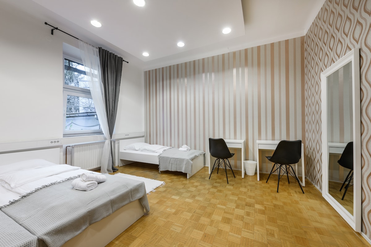 도심 한가운데 그림 같은 포스트나 거리에 있는 아늑한 숙소인 4개의 방에 오신 것을 환영합니다. 공용 욕실과 휴식을 취할 수 있는 공용 공간이 있는 객실 4개(2인용 3개, 3인용 1개)를 제공합니다. 각 객실에는 스마트 TV, 침구, 수건, 옷장이 있습니다. 최대 9명의 게스트가 편안하게 숙박할 수 있는 완벽한 숙소입니다.
