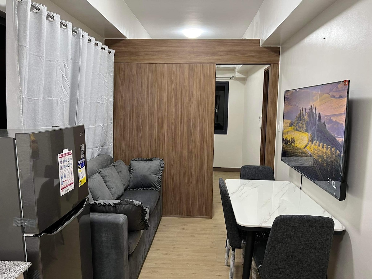A fully-furnished, Ig-worthy, cozy and stylish 34sqm, 2-BR condo corner unit with an awesome balcony where you can relax, celebrate important events or just have a quick get-away with your family or friends and enjoy unique, world-class amenities like the wave pool, man-made white beach, children's playground, basketball court, gym, volleyball court, beach bar, sky garden and many more. It is just a 5-minute walk from a shopping mall (SM Bicutan) and only 10-15 minutes away from NAIA Airport.