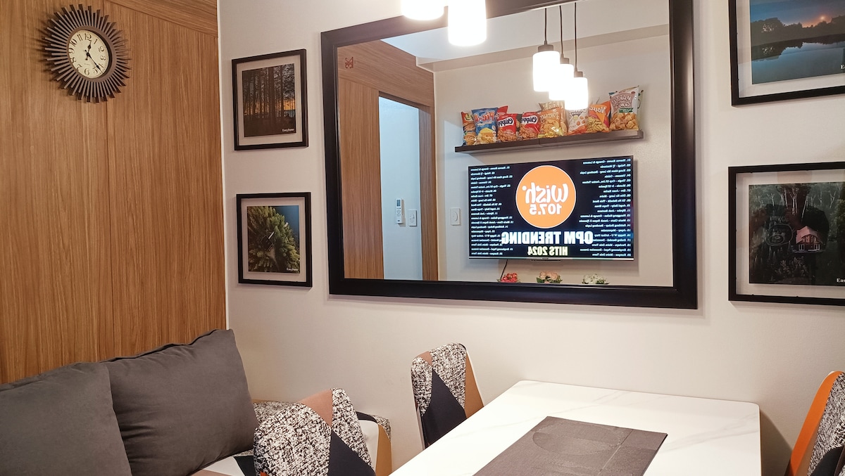 숨 막히는 BGC 스카이라인 전망, 영화 같은 JBL 서라운드 사운드, LED 무드 조명이 있는 55인치 풀 4K 스마트 TV를 갖춘 고층 스위트로 떠나보세요. 영화의 밤을 위한 최고의 안식처입니다. 고급 쌍안경으로 풍경을 감상하고, 매우 편안한 Emma® Cloud-Bed에 몸을 맡기고 완벽한 숙면을 취해보세요. 도시의 소음에서 멀리 떨어져 있지만 모든 것에 가깝습니다. 초고속 와이파이, 넷플릭스, 디즈니+ 등을 즐기세요! 시네마 27와 함께 잊지 못할 스테이케이션 경험을 위한 시설이 완비된 공간입니다!