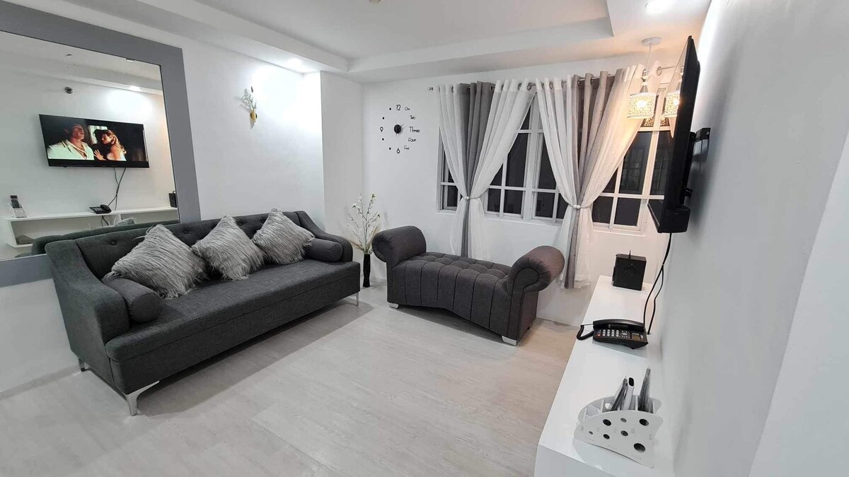 Mplace Tower D Panay Avenue, Diliman QCz에 위치한 아늑한 숙소에서 가족, 친구 또는 소중한 사람과 함께 즐거운 시간을 보내세요. 티모그 애비뉴, MRT 퀘존 애비뉴 역, ABS-CBN, 바이스 코미디 클럽 등 근처에 위치하고 있습니다! 탐험을 원하신다면 이 지역에는 다양한 음식 옵션이 있습니다. 평화롭고 조용한 동네도 있습니다. 수영장 이용은 정규일에는 P150, 휴일에는 P300의 요금으로 이용하실 수 있습니다. 궁금하신 사항이 있으면 메시지를 보내주세요.