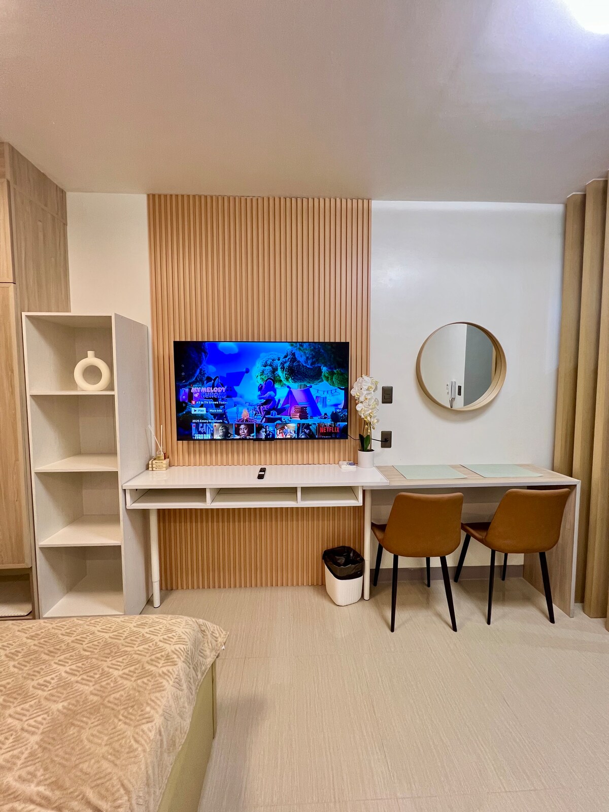 A fully furnished 28sqm condo with a hotel inspired unit at Shore Residences Tower C that is located in the Mall of Asia Complex. The place is near the Mall of Asia, the SMX Convention where conventions and important events are held. We offer wifi internet connection and smart tv with netflix. For client's safety, we observe strict thorough cleanliness, disinfection and sanitation. We are 17minutes away from NAIA aiport, 4 to 6minutes ride to Mall of Asia
