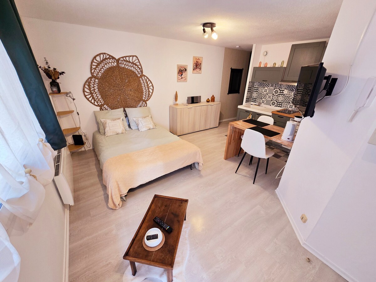 루가냥 타이니 하우스 옆에 있는 루르드와 아르겔레-가조스트 사이의 녹색 시장 (자전거 도로) 가장자리에 위치한 "베우트" 스튜디오를 만나보세요. 스튜디오의 면적은 21m ² 이며, 이상적으로 위치해 있습니다. 3인용 시설, 수면 공간 (이층 침대 1개 90 x 200cm 및 서랍 침대 90 x 190), 주방 공간 - 거실, 변기가 있는 샤워실. 시트와 타월이 제공됩니다. 야외 배치 진행 중. 무료 주차.