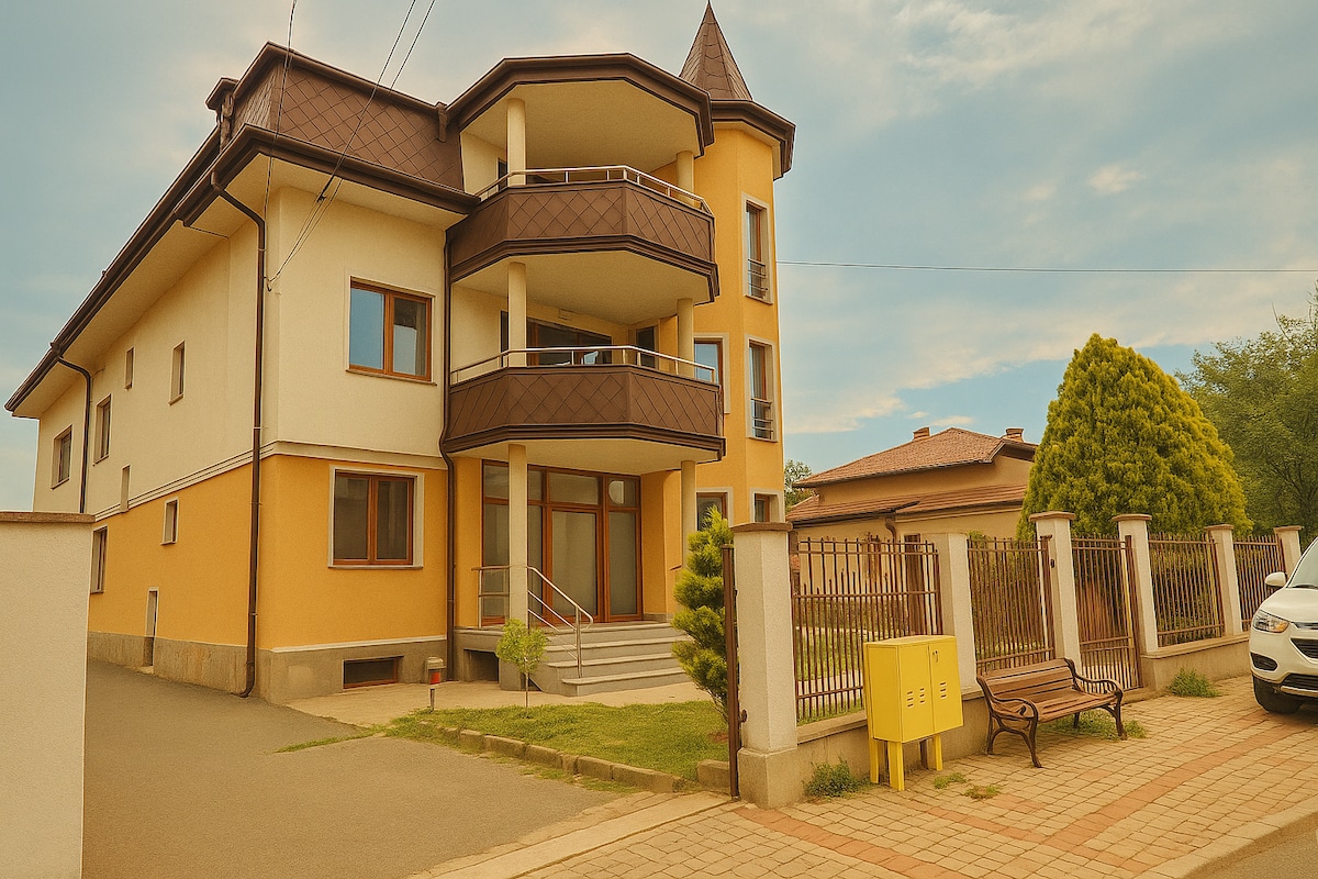 위치가 훌륭한 가족 호텔. 조용한 거리. 중심지까지 - 차로 10분, 대중교통으로 30분. 불가리아 스타일의 선술집.