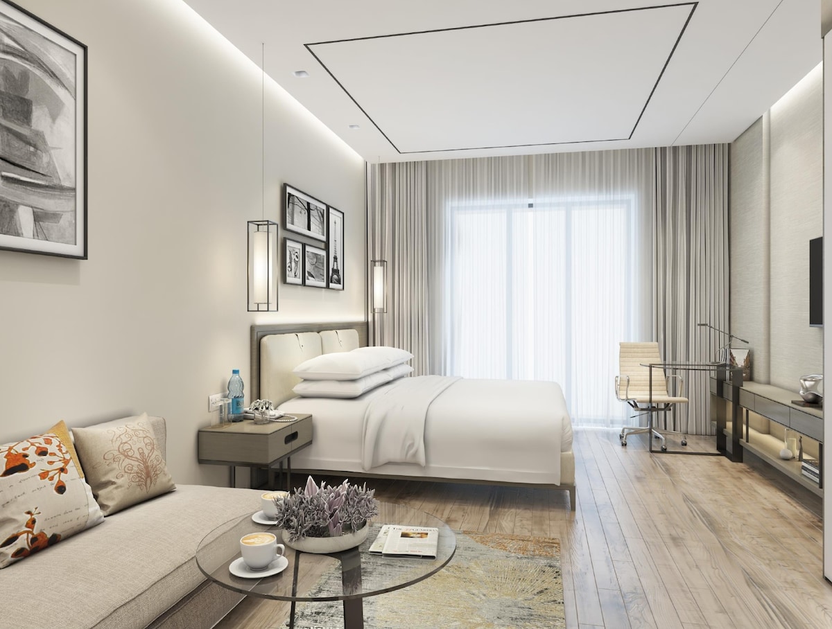 Indulge in a luxurious stay at Bloom Central, where modern elegance meets comfort. This stylish 1BHK features a chic open kitchen, a private balcony, and exclusive access to premium amenities including a serene pool and secure parking. Perfectly located in the heart of Gurgaon, it offers an upscale retreat for guests seeking sophistication, convenience, and a truly elevated experience.