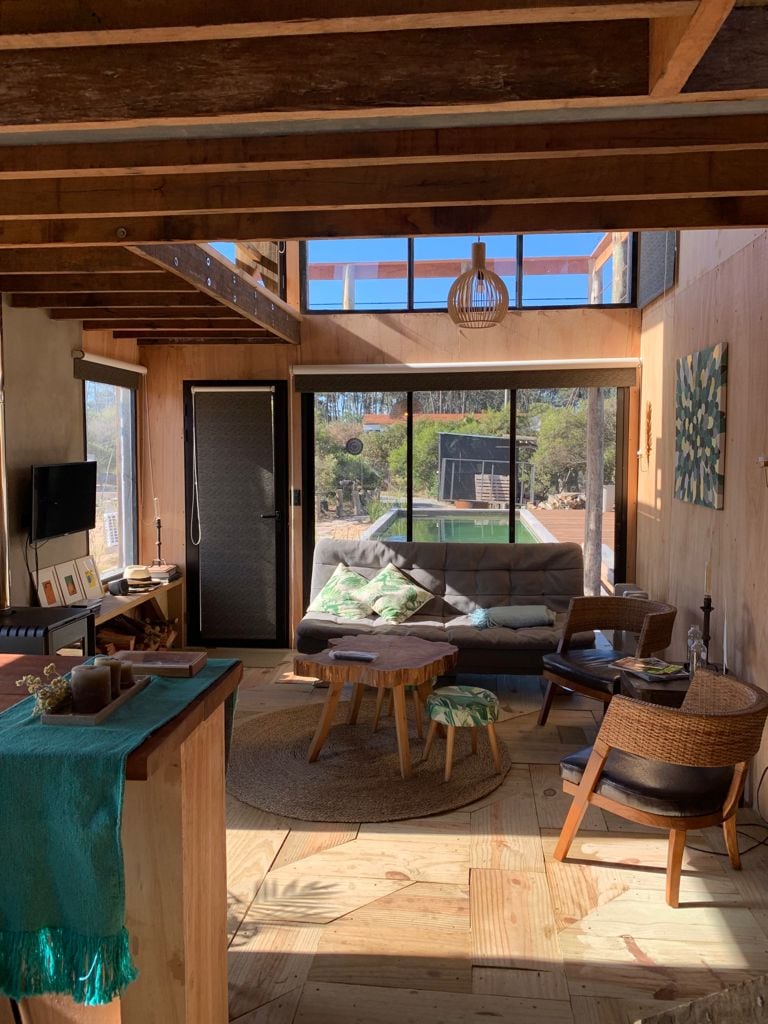 La casa de 60 mts, está ubicada en la altura de la montaña, con unos paisajes maravillosos que se observan desde todos los ambientes. Es para 2 adultos, cuenta con amplio dormitorio, baño y cocina completa integrada al living comedor el cual tiene estufa a leña. La casa tiene un deck propio con parrilla barbecue. En el area comun a las 3 casas se encuentra la piscina infinita climatizada, en temporada.