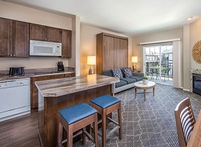 **Condo: Queen Murphy bed in living area. Partial kitchen with 2-burner stovetop, microwave and fridge. Maximum occupancy 2. This condo is located right in the heart of Solvang! Discover the bustling downtown shopping district filled with European wares, antiques and aromatic bakeries. There are also several wine-tasting rooms in town.