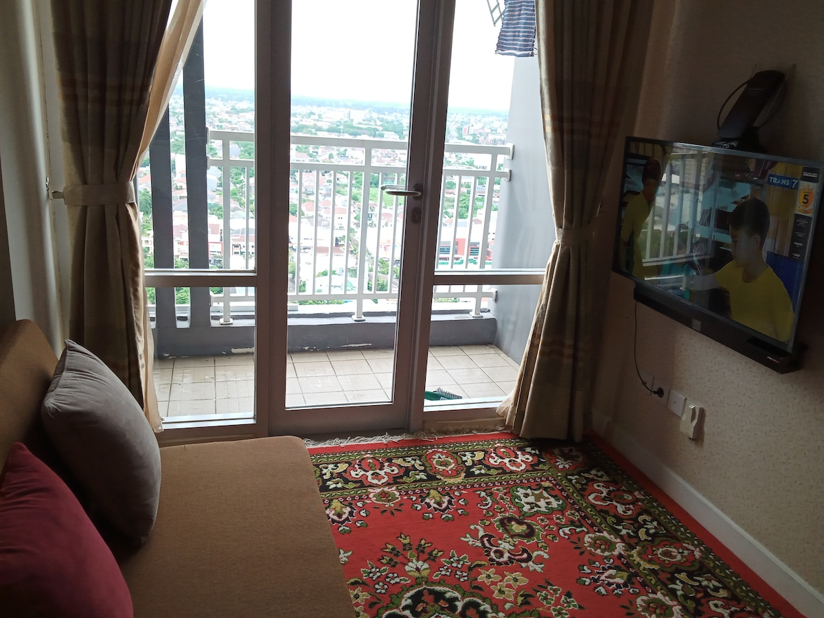 침실 2개의 스위트 타입 크기: 80m ² -냉장고 -커피 머신 -물용 디스펜서 - 세탁기 - 주방 용품 -청소도구 -와이파이 -온수기 -발코니 - TV -다리미 - 접이식 의류 라인 -스프레이/침대 커버 -전기 3850와트 편의시설 1. 수영장 2. 헬스장 3. 24시간 보안 4. 카드 액세스 5. 전기 & 수도 7. 다기능실 8. 루프탑 31층 고도 * 9월 ~ 10월 프로모션 요금 * 매일 Rp1.5jt/malam 1개월 Rp25.jt/bulan 1년 IDR 200m * 유지 보수 비용은 숙소 소유자가 부담합니다 *