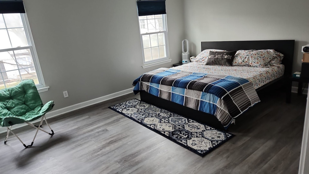 Welcome to a comfortable and peaceful home 😊 This cozy private room features a king-size bed, your own private bathroom, and a large bay window with a beautiful view, bringing in plenty of natural light.