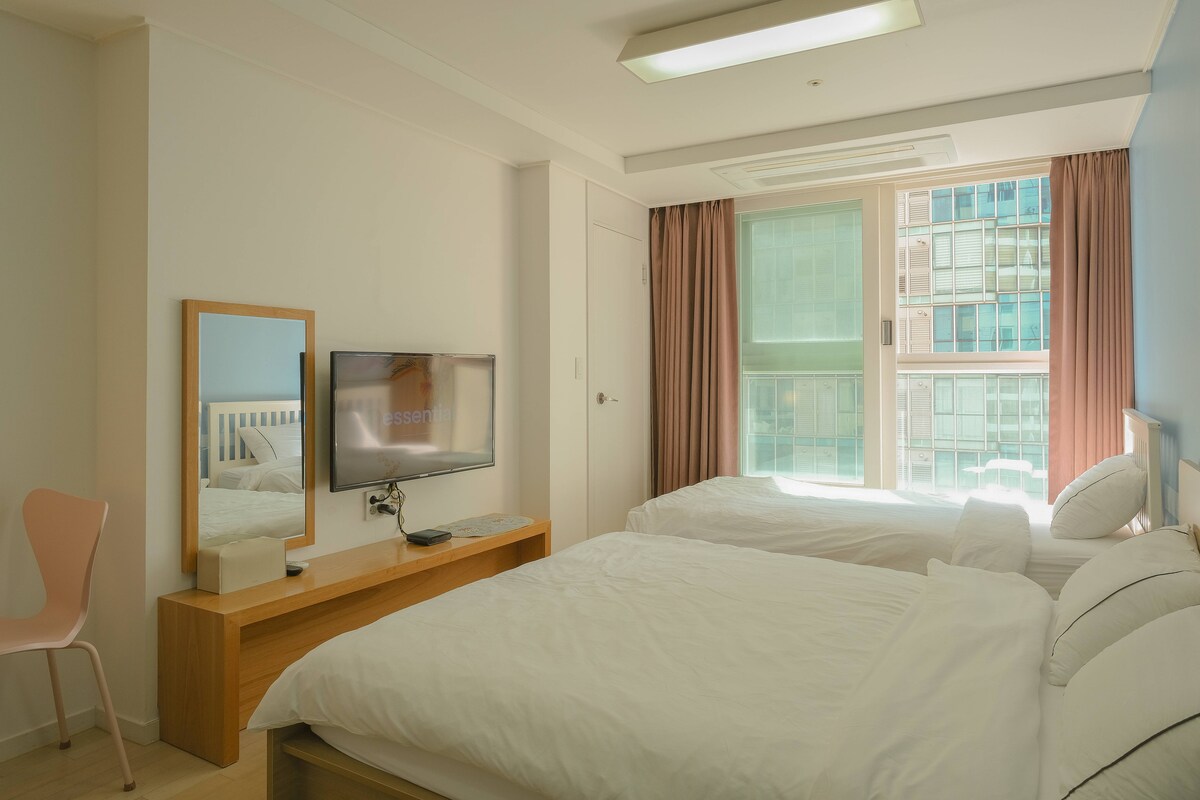 해운대 중심에 위치한 ThePlace34의 초고층 오션뷰 객실입니다. 해변 도보 5분, 지하철역 도보 3분으로 접근성이 뛰어납니다. 체크인 전·후 무료 짐보관이 가능해 이동이 한결 편리합니다. 전 객실 정수기와 Netflix·YouTube 시청이 가능합니다. 합법 숙소로 안심하고 편안하게 머무실 수 있습니다. ✅️체크인 / 체크아웃 : (4:00 PM / 12:00PM)