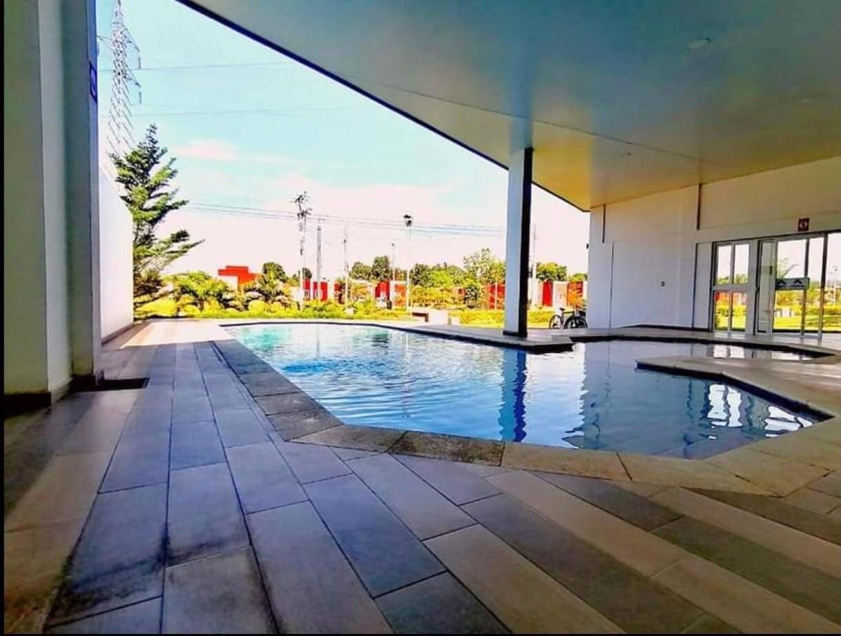 Este alojamiento se encuentra en una residencia privada céntrica, cerca de lugares turísticos, zonas costeras, ruta las flores y centro comerciales. dentro de la residencia se cuenta con seguridad 24/7, piscina, cancha y zona de juegos para niños, el alojamiento cuenta con WIFI, AIRE ACONDICIONADO y esta equipada con todos los elementos esenciales de un hogar.